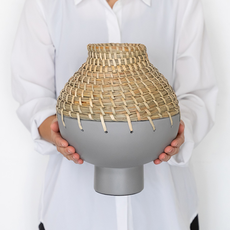 置いているだけで絵になる、異素材の組み合わせが魅力的なフラワーベース。