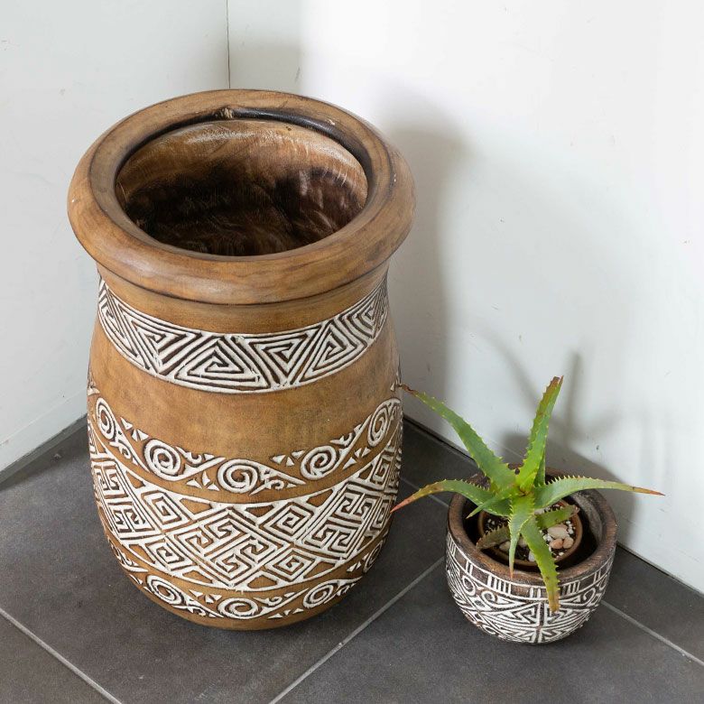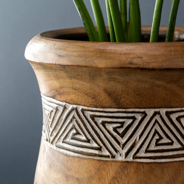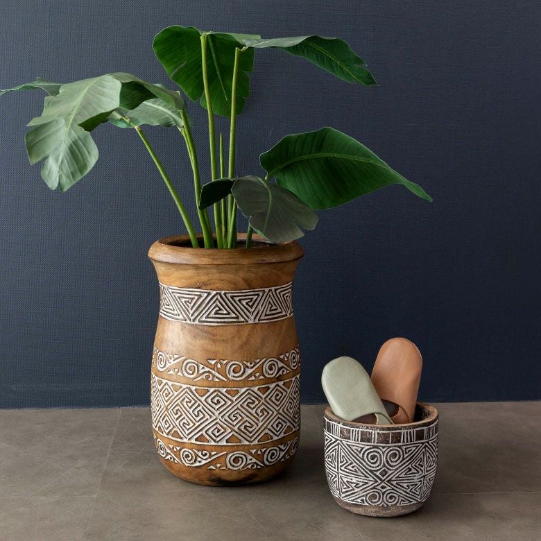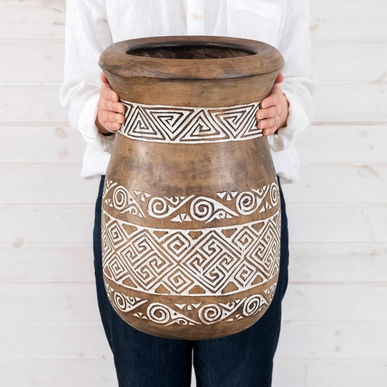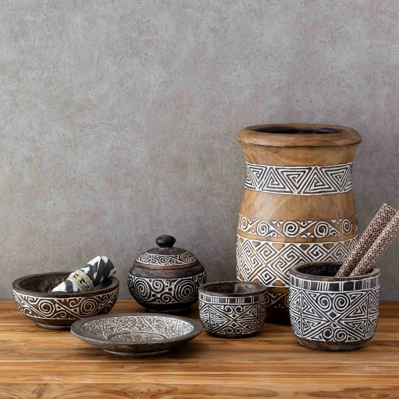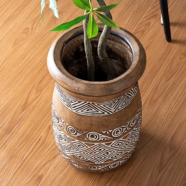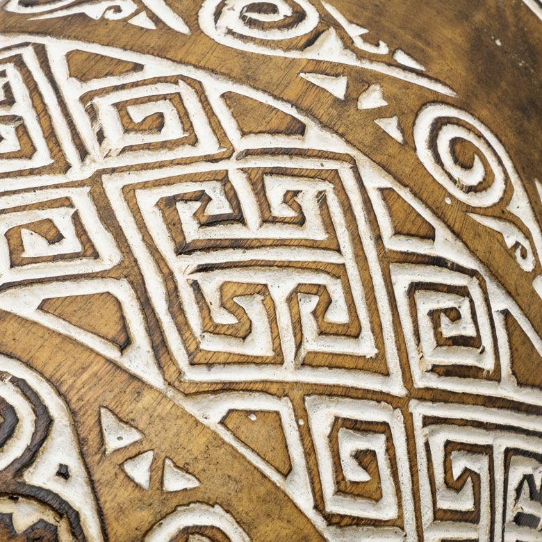 表面に施されたアジアンオーラ漂う彫刻は、インドネシア・スンバ島に伝わる伝統的な文様です。
