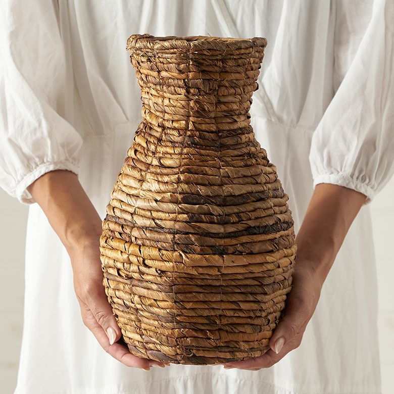 自然素材ならではの温かみと曲線美が魅力のフラワーベース。こちらはアバカを使用し、インドネシアの職人が一つ一つ丁寧に仕上げました。ざっくりとした手編みの風合いは、アジアンリゾートのようなリラックス感と自然の癒しをお部屋にプラス。どんな場所に置いても存在感を発揮し、植物やドライフラワーを美しく引き立てます。ボトル型のフラワーベースと並べるとお部屋をセンス良く魅せることができます。そのまま置いてオブジェとしても使えるので、カフェや店舗のディスプレイとしてもおすすめ。