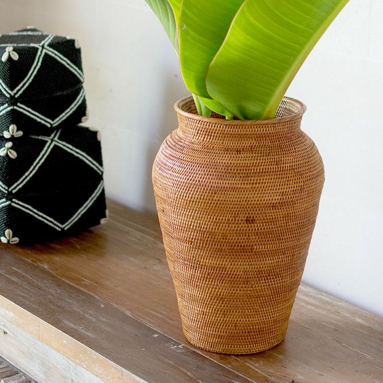 アタの素材感を活かしたバスケットは、リゾートインテリアや植物とも相性抜群。