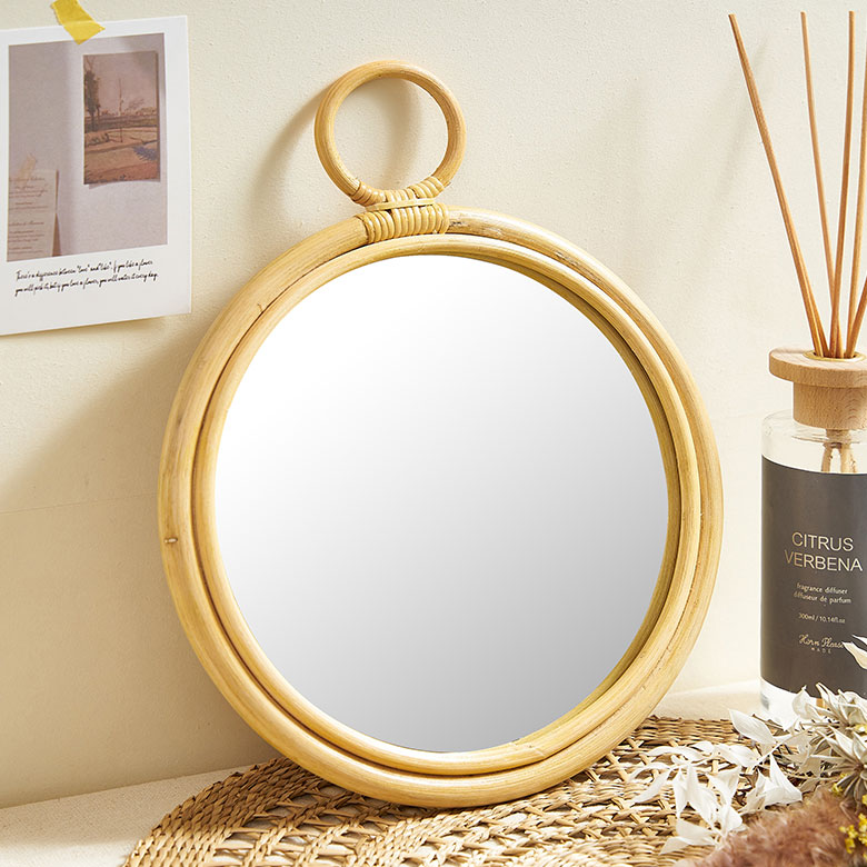 ラタンのラウンドミラー