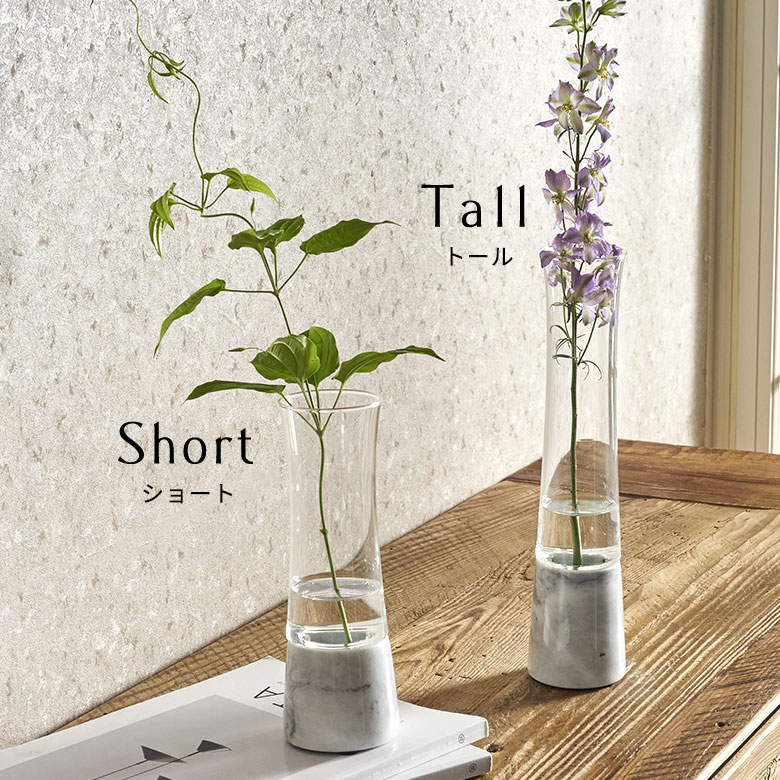 大理石とガラスを組み合わせたインテリア性の高いフラワーベース。