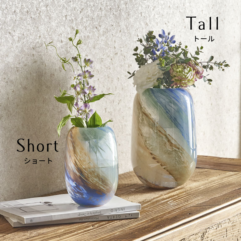 水面に色が流れるような、ニュアンス感溢れるフラワーベース。
