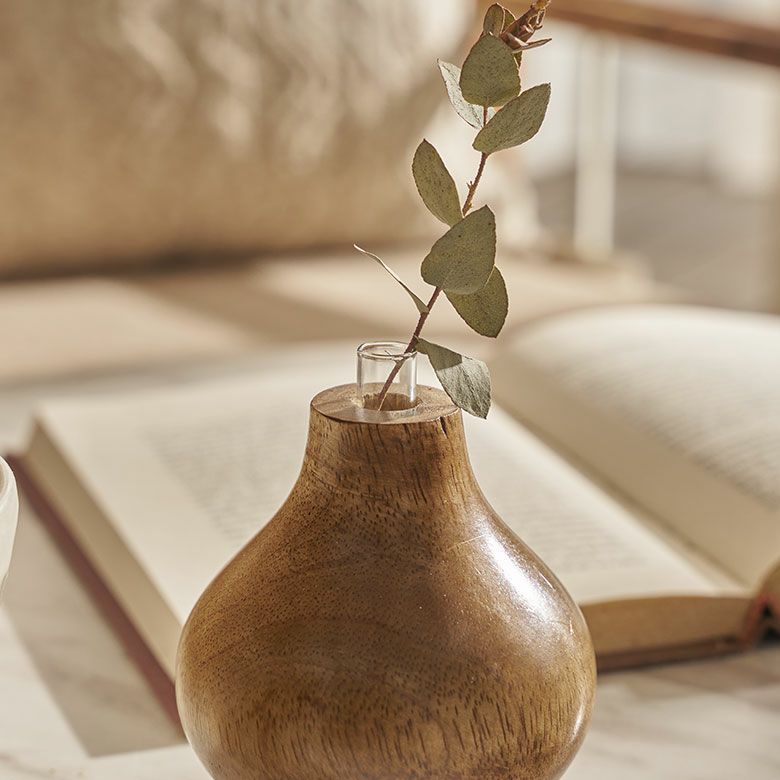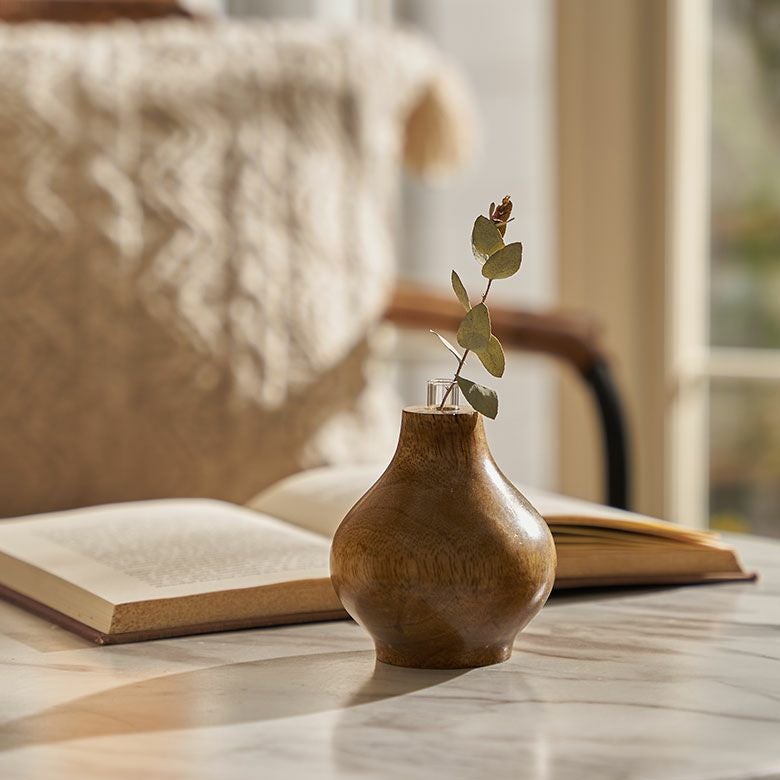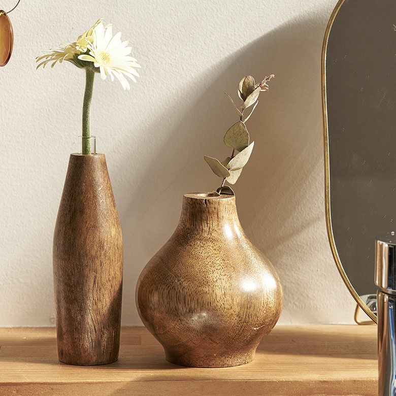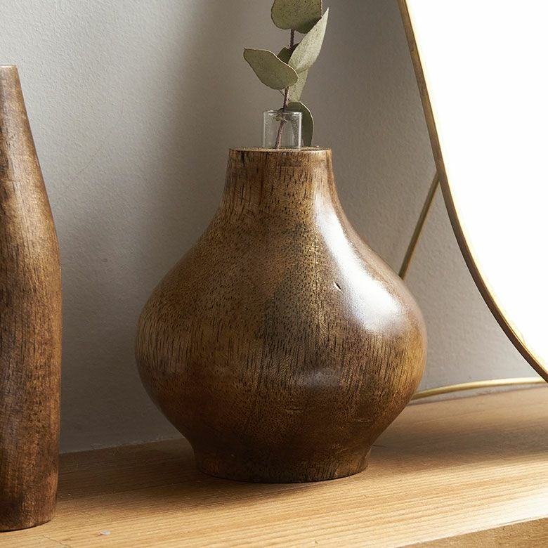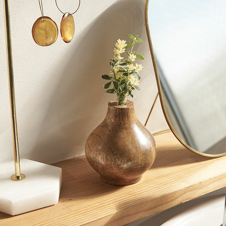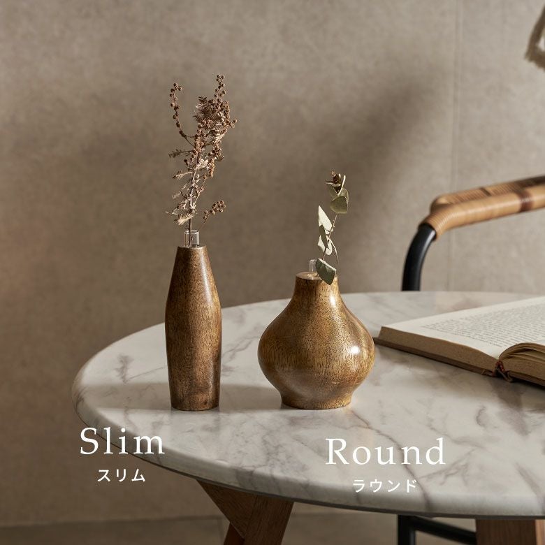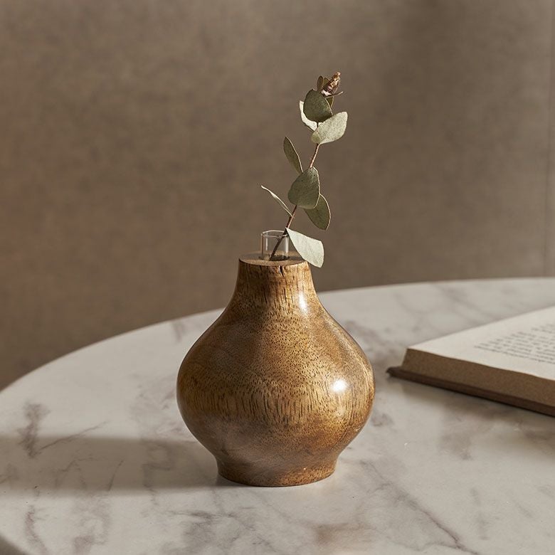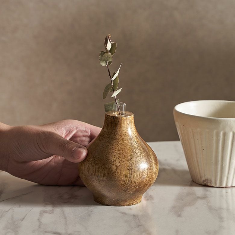 小ぶりサイズが可愛らしい、ナチュラルな木製のフラワーベース。