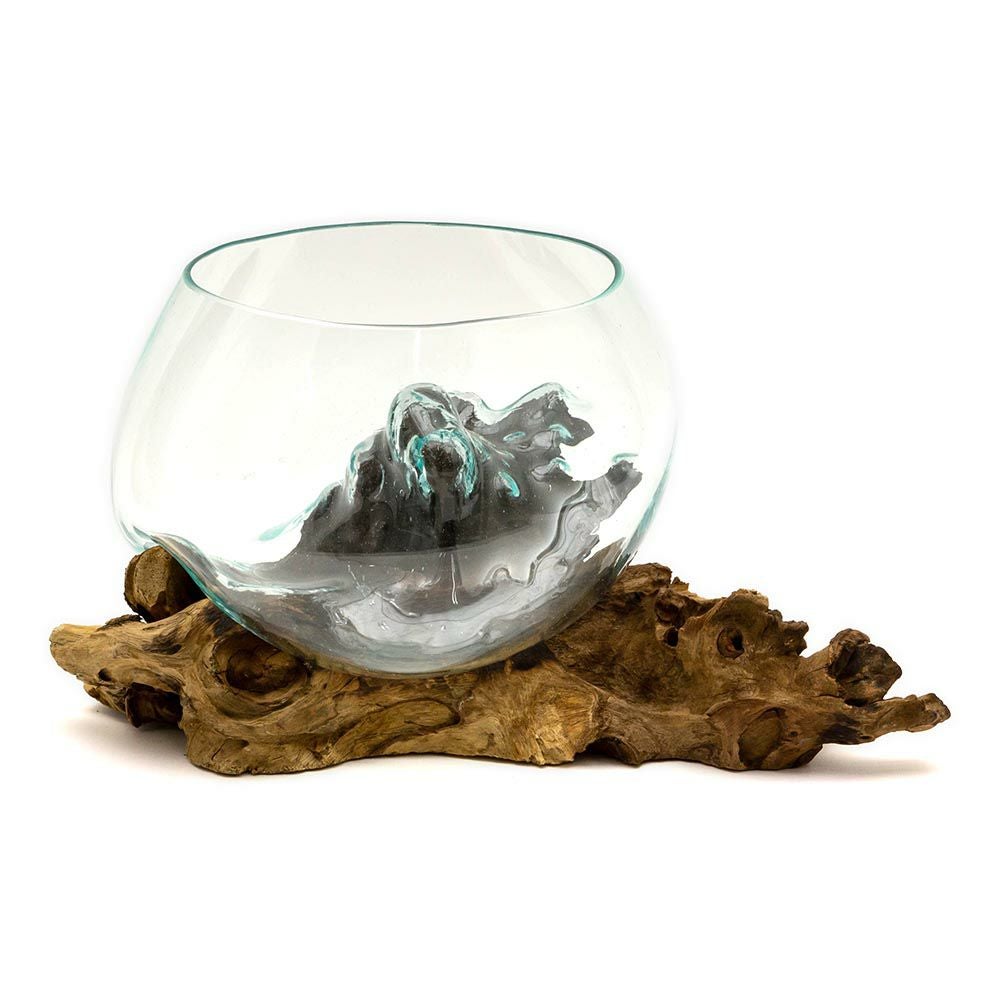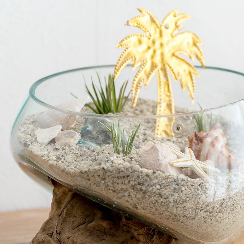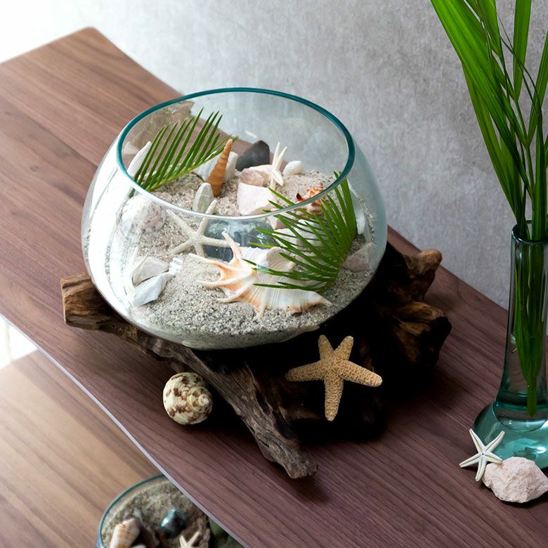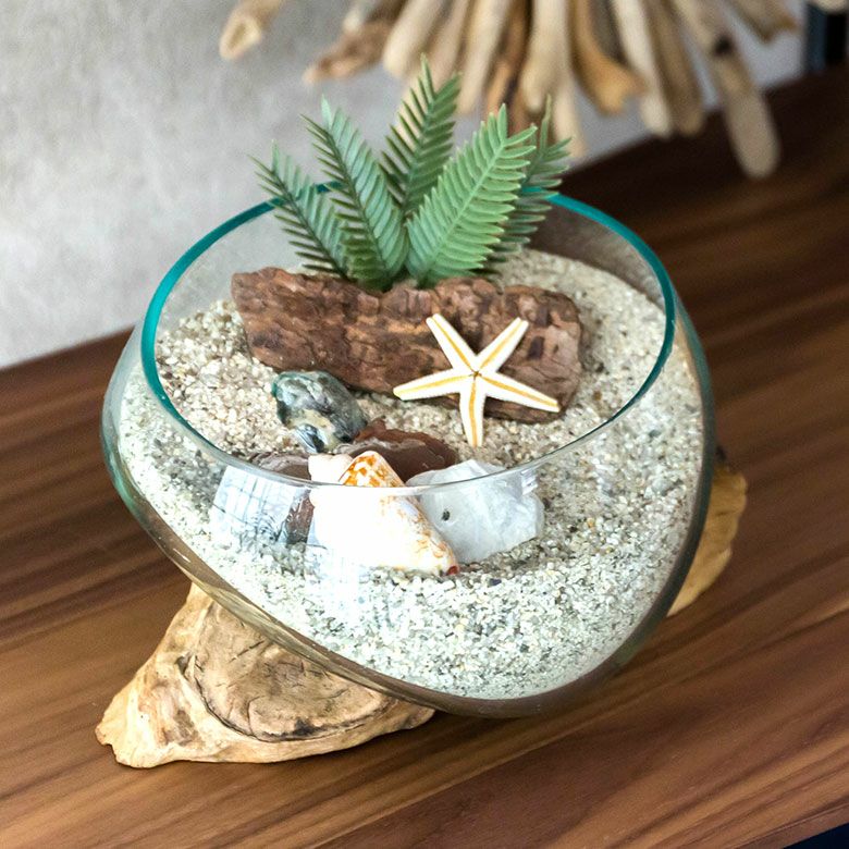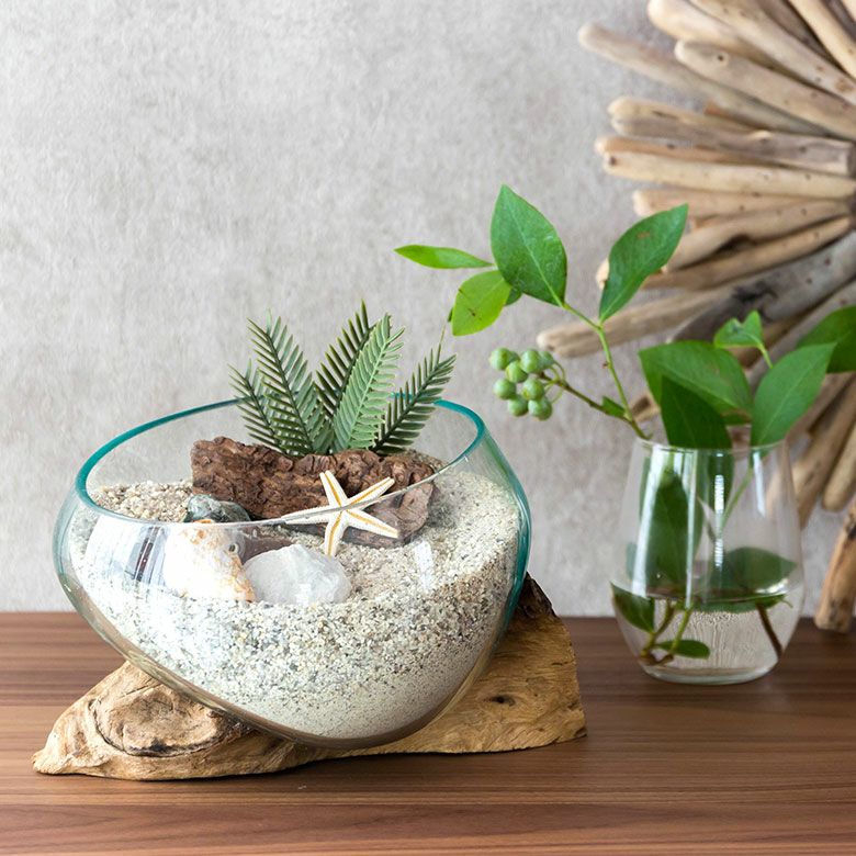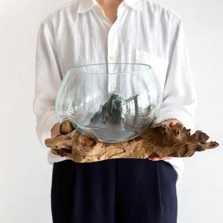 流木にガラスボウルを組み合わせたインテリアオブジェ☆天然の流木でできた一点もの! ガラスと流木のプランターオブジェ Lサイズ(12162)【花瓶 花器 花入れ プランター 流木 水槽 水鉢 フラワーボウル オブジェ インテリア バリ アジアン雑貨 テラリウム アート バリ島 モダン おしゃれ エアープランツ 容器】