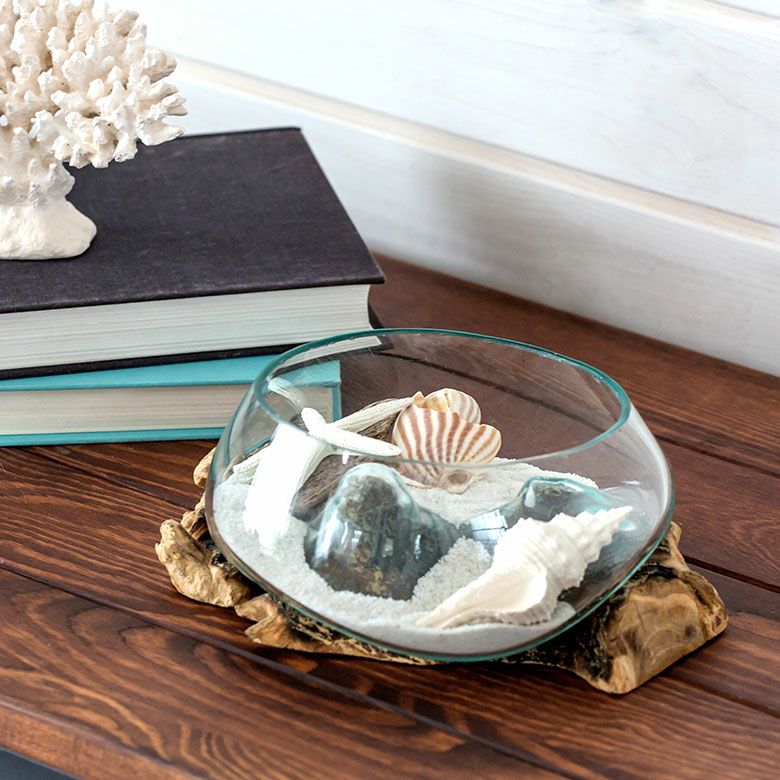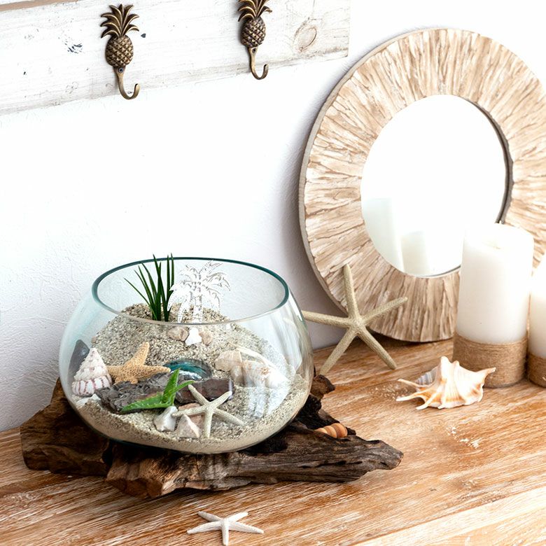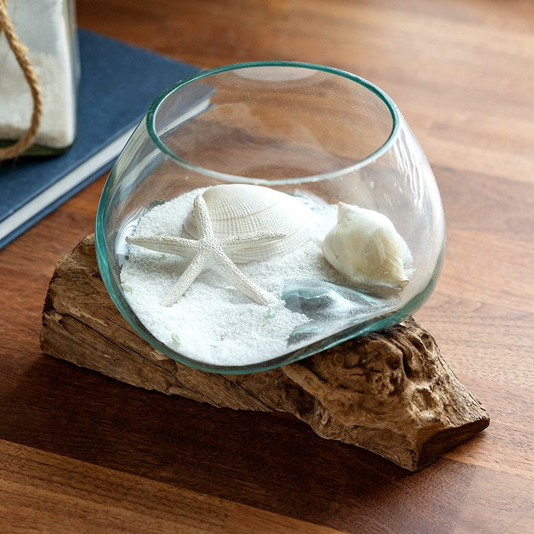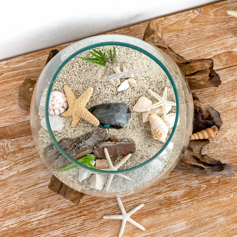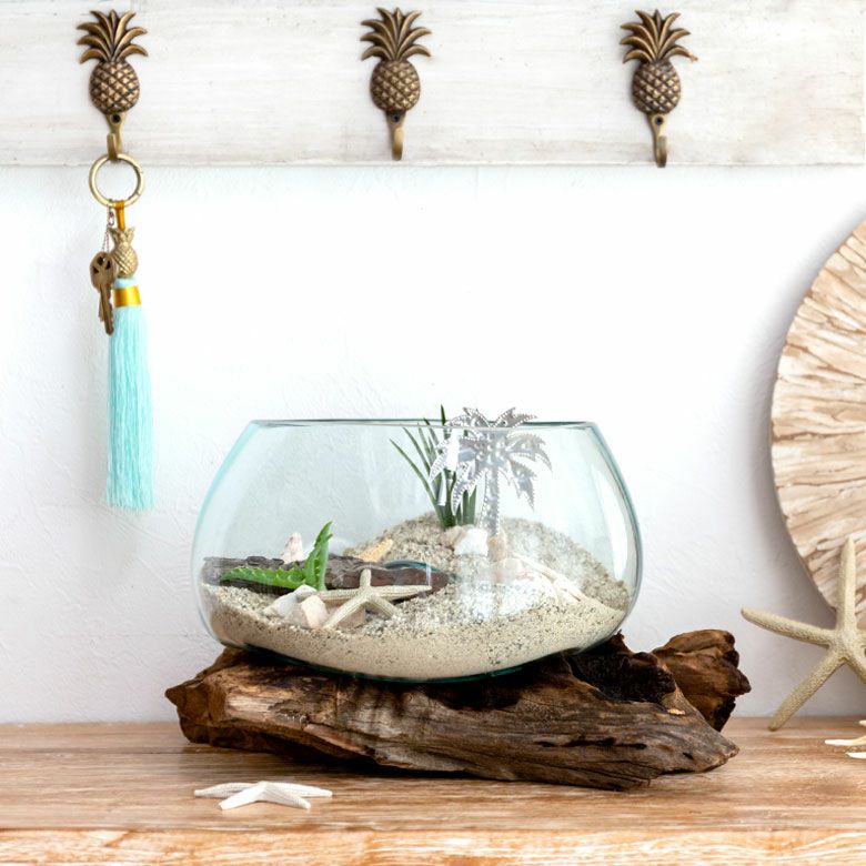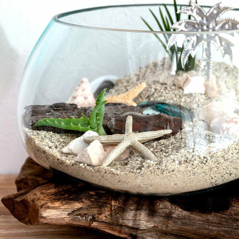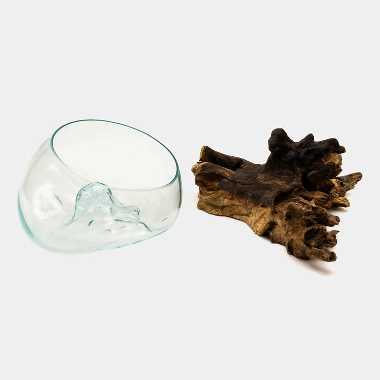 流木にガラスボウルを組み合わせたインテリアオブジェ☆天然の流木でできた一点もの! ガラスと流木のプランターオブジェ Lサイズ(12162)【花瓶 花器 花入れ プランター 流木 水槽 水鉢 フラワーボウル オブジェ インテリア バリ アジアン雑貨 テラリウム アート バリ島 モダン おしゃれ エアープランツ 容器】