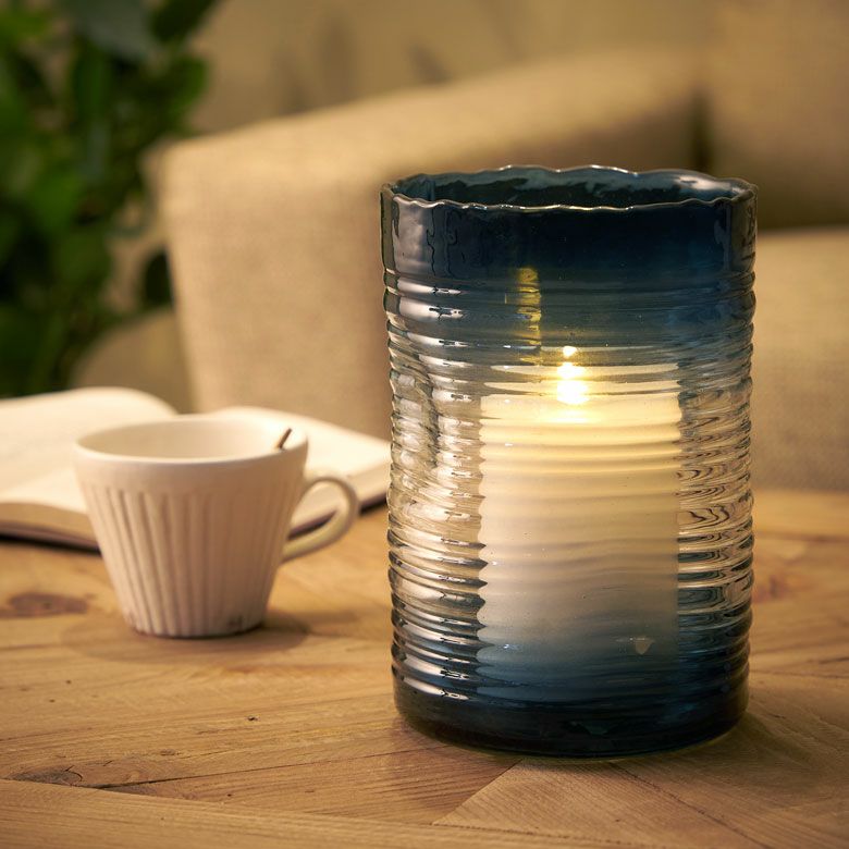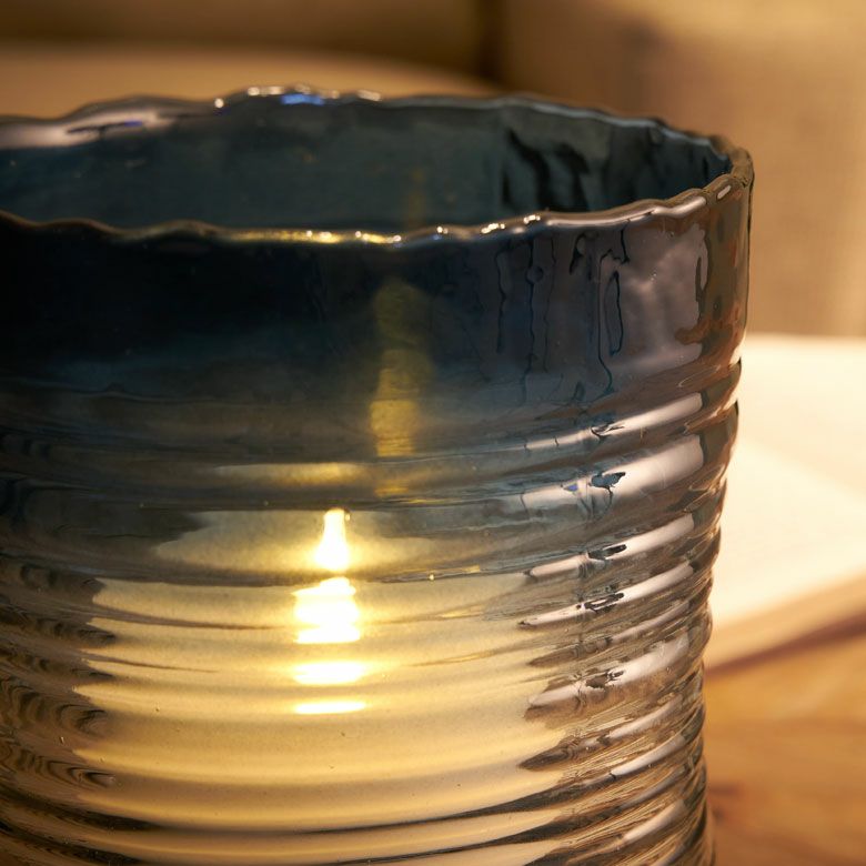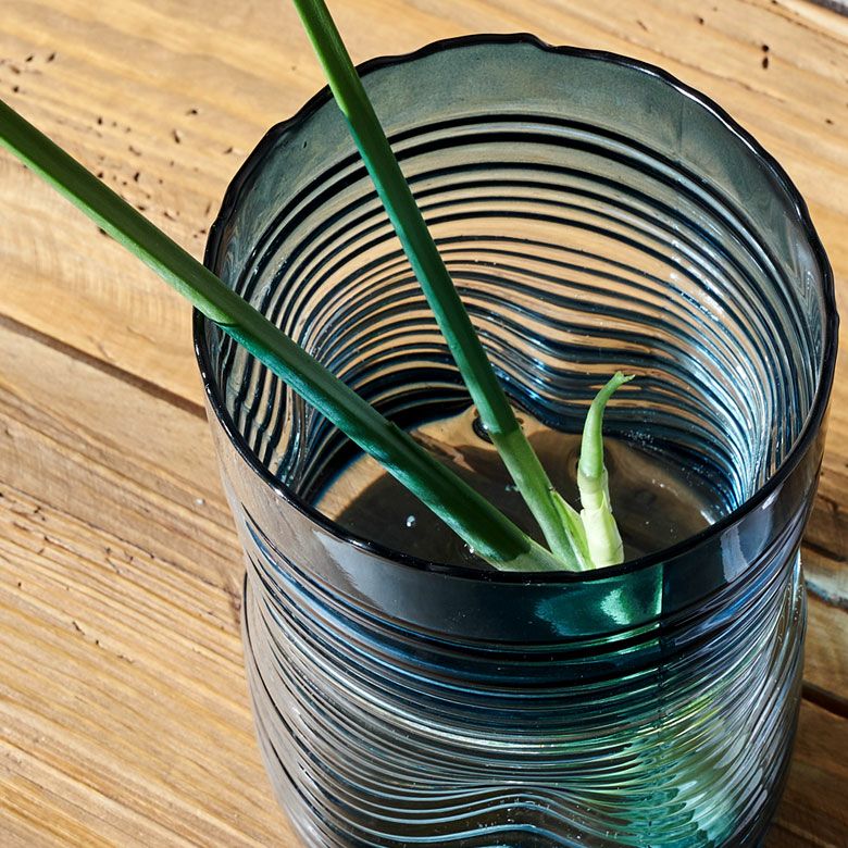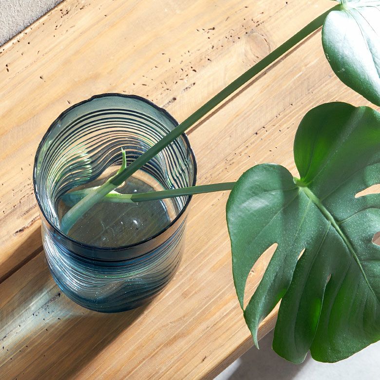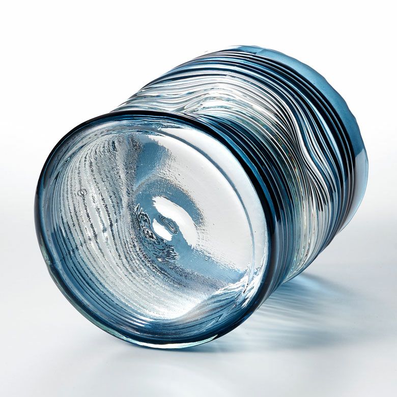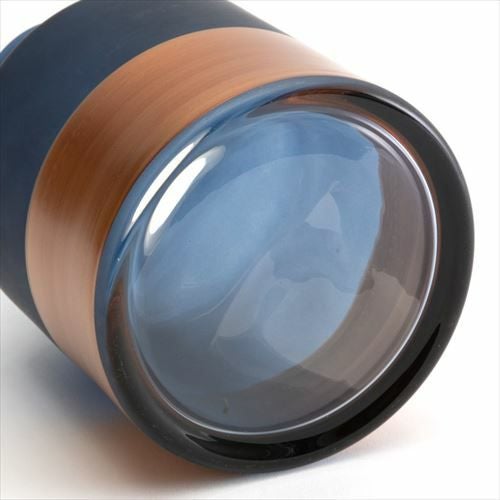 デザイン花瓶 ガラスオブジェ 丸 筒 透明 クリア 青色 フラワーベース ガラス ブルー グラデーション ウェーブデザイン 横縞 上径13.5cm 楕円柱 約 W13.5×D13.5×H20.5 cm 花瓶 花びん 花器 ガラスベース ガラス花びん 生花 ドライフラワー おしゃれ 北欧 韓国 インテリア アジアン 雑貨 アジアン雑貨 [67089]