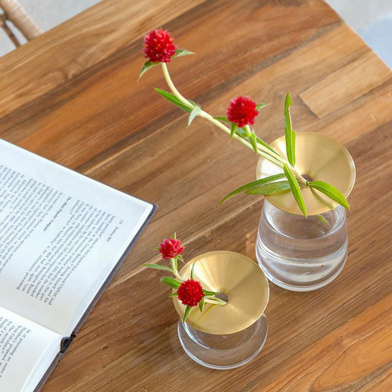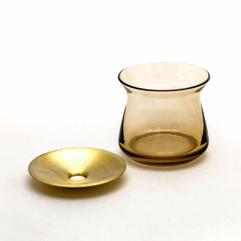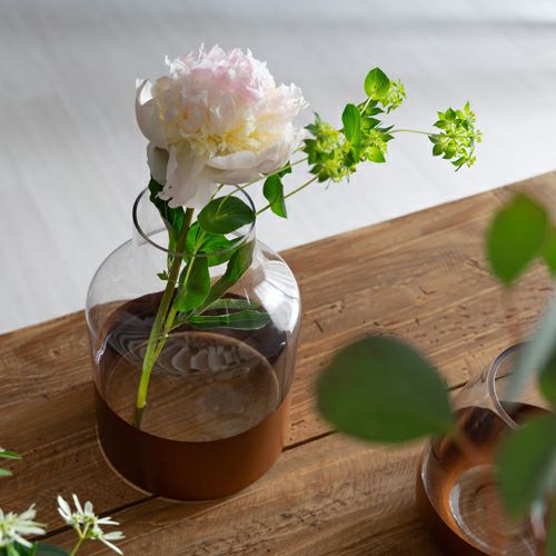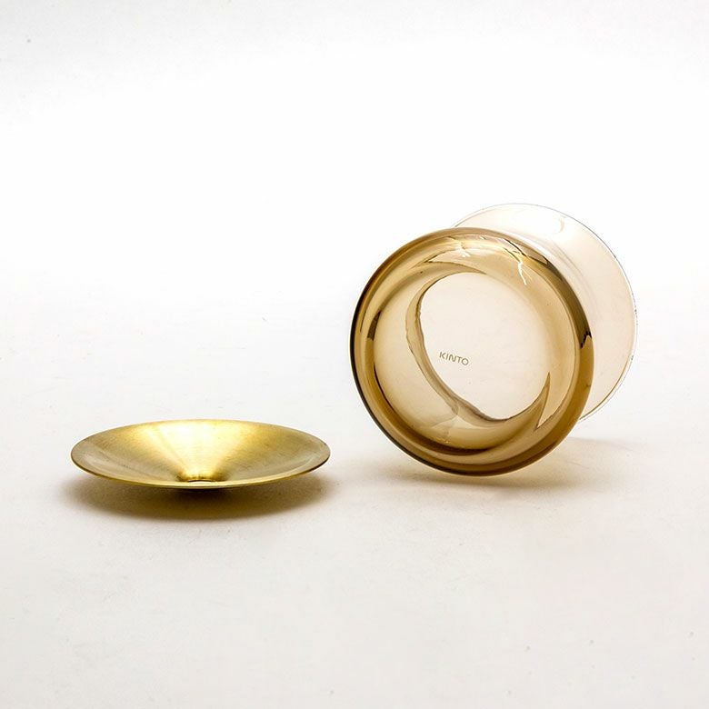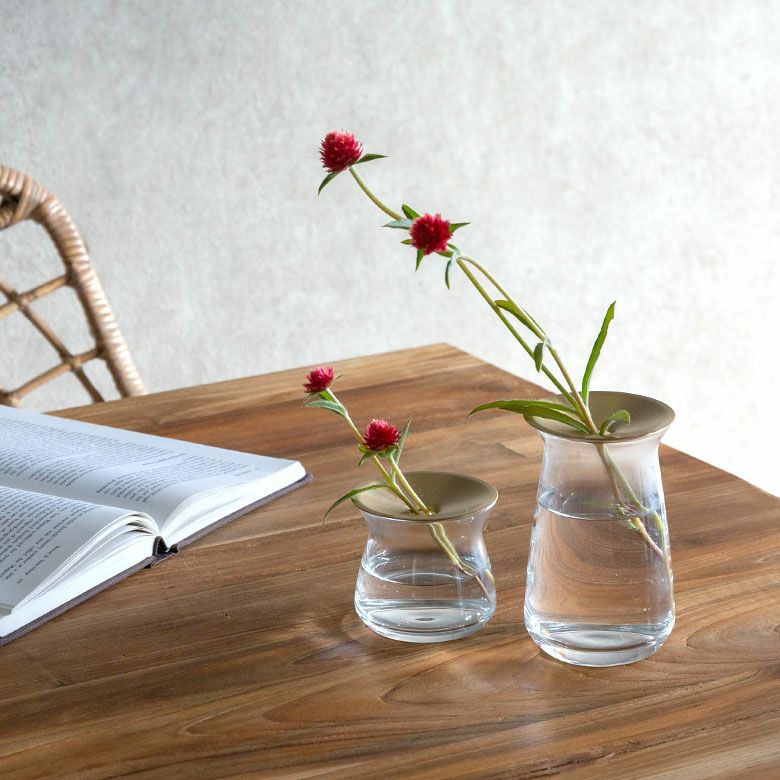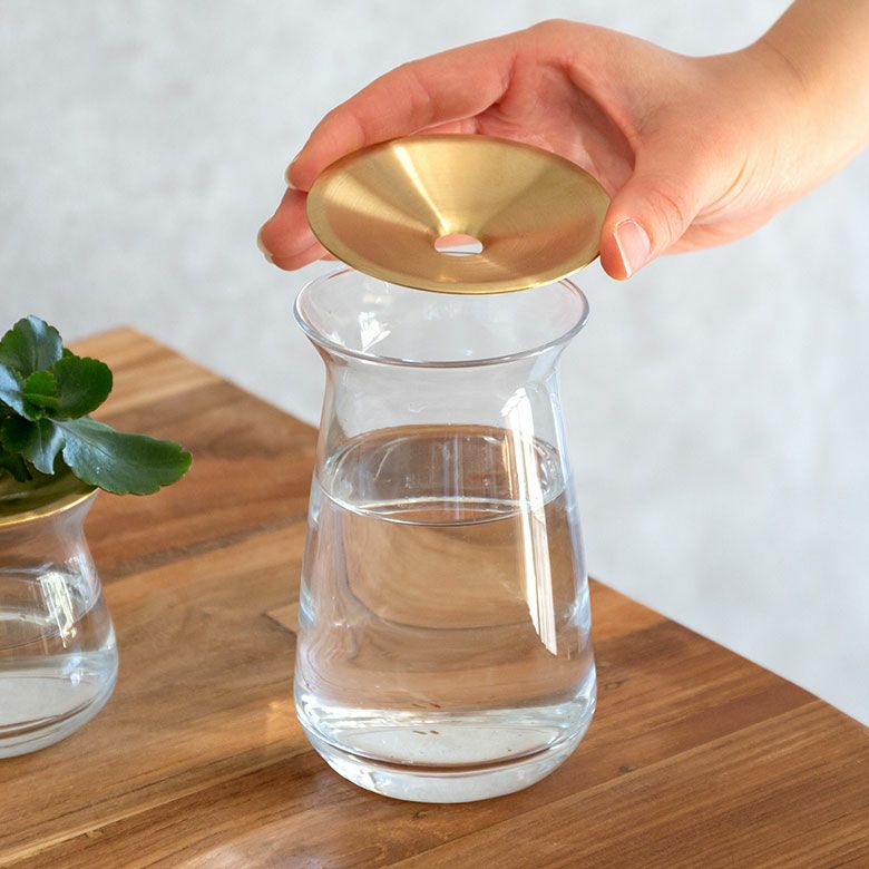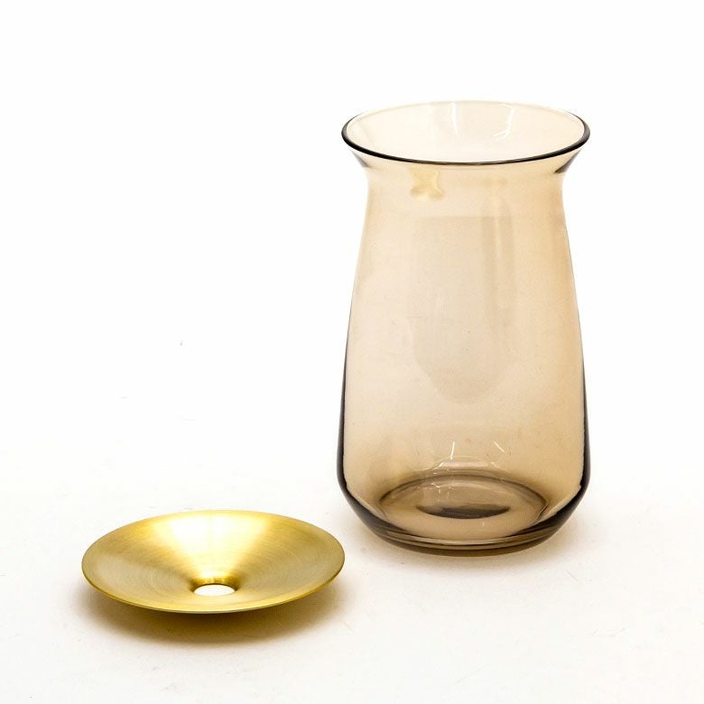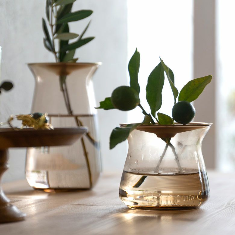 花器 ガラスフラワーベース 観葉植物 ギフト プレゼント 贈り物 フラワーベース 一輪挿し ガラス 真鍮 クリア ブラウン 直径 8cm 高さ 7cm 170ml [90389]【 花瓶 ブラス 小さめ 小ぶり ゴールド ラウンド 水耕栽培 水栽培 ハイドロポニック おしゃれ お手入れ簡単 透明 茶色 KINTO】