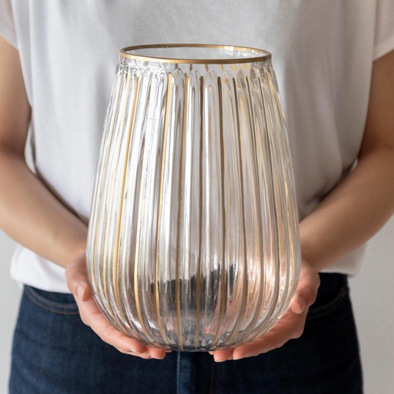 花びん 大きい プランターポット 花生け かびん 花器 フラワーベース クリア ガラス 花瓶 Mサイズ 約 W 19cm D 19cm H 27cm マット アンティーク ゴールド [66984]【 エレガント アンティーク調 花器 一輪挿し 花入れ 生花 花入れ 置き物 オブジェ 北欧 おしゃれ かわいい リゾート アジアン インテリア 雑貨 】
