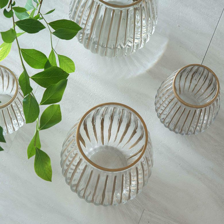 花びん 小さい プランターポット 花生け かびん 花器 フラワーベース クリア ガラス 花瓶 Sサイズ 約 W 13cm D 13cm H 16cm マット アンティーク ゴールド [66983]【 エレガント アンティーク調 花器 一輪挿し 花入れ 生花 花入れ 置き物 オブジェ 北欧 おしゃれ かわいい リゾート アジアン インテリア 雑貨 】