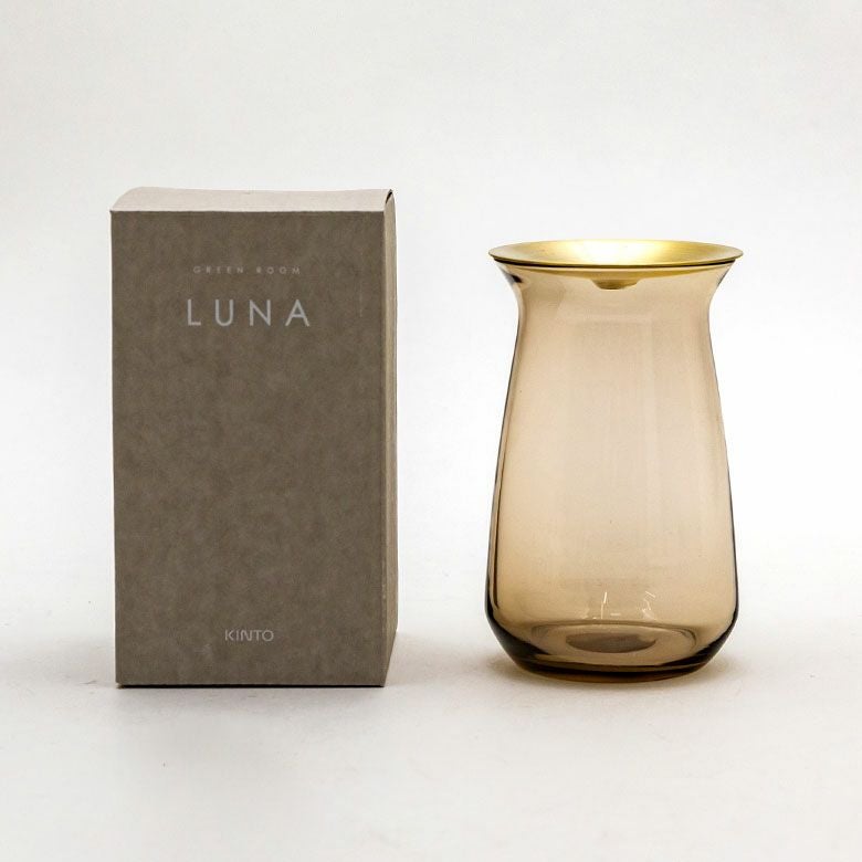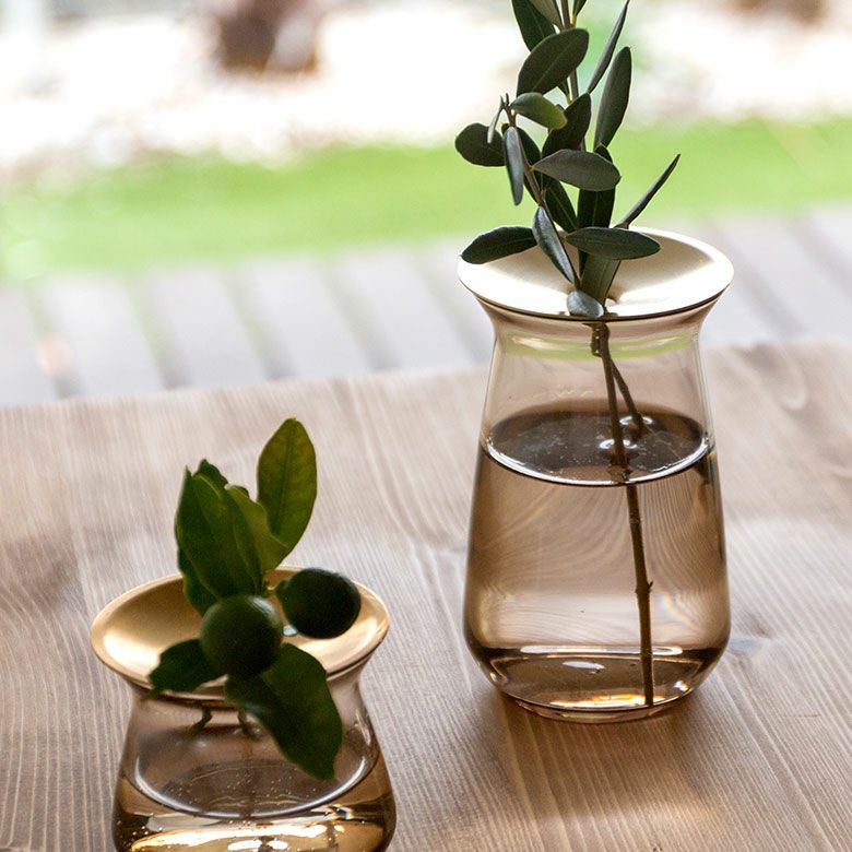 花器 ガラスフラワーベース 観葉植物 ギフト プレゼント 贈り物 フラワーベース 一輪挿し ガラス 真鍮 クリア ブラウン 直径 8cm 高さ 13cm 360ml [90390]【 花瓶 ブラス ゴールド ラウンド 水耕栽培 水栽培 ハイドロポニック おしゃれ お手入れ簡単 透明 茶色 KINTO】