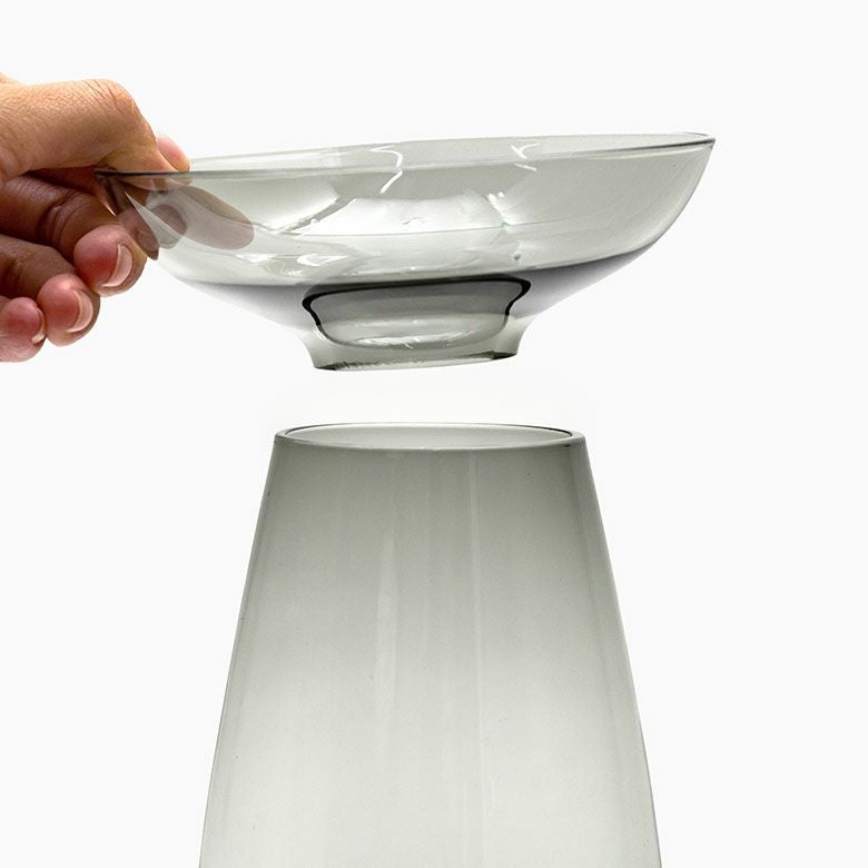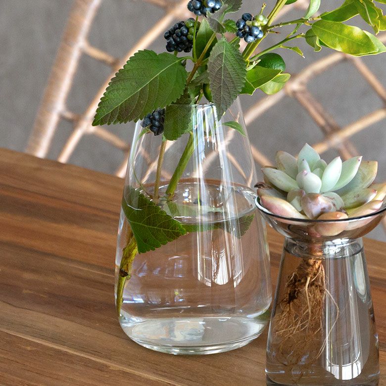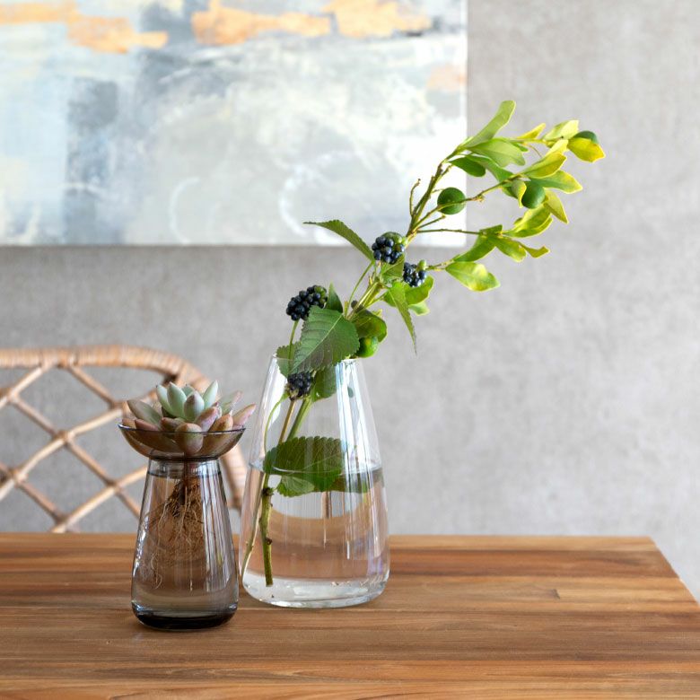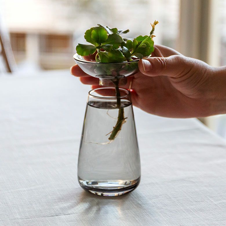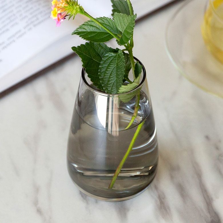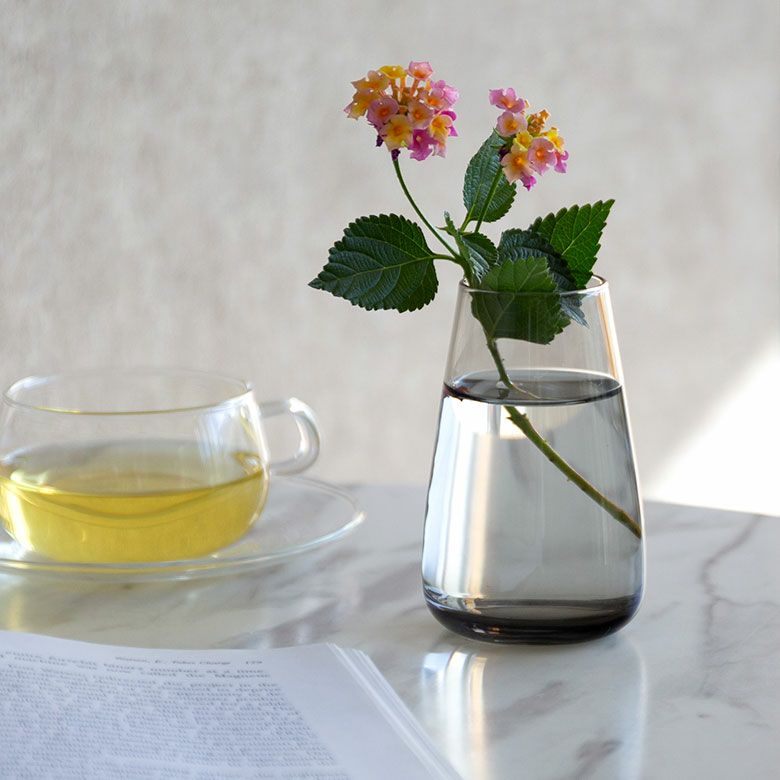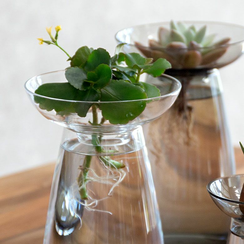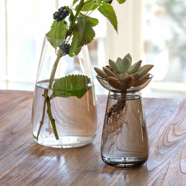 花器 ガラスフラワーベース 観葉植物 ギフト プレゼント 贈り物 フラワーベース 一輪挿し ガラス クリア グレー 直径 8cm 高さ 13cm 200ml [90391]【 花瓶 ラウンド 水耕栽培 水栽培 ハイドロポニック おしゃれ お手入れ簡単 2パーツ 透明 灰色 ヒヤシンス サボテン 球根 多肉植物 栽培 KINTO】