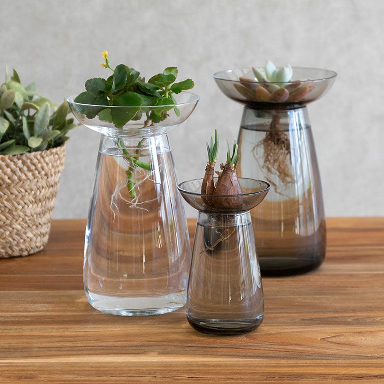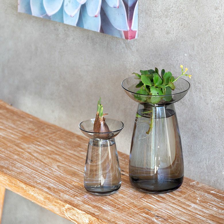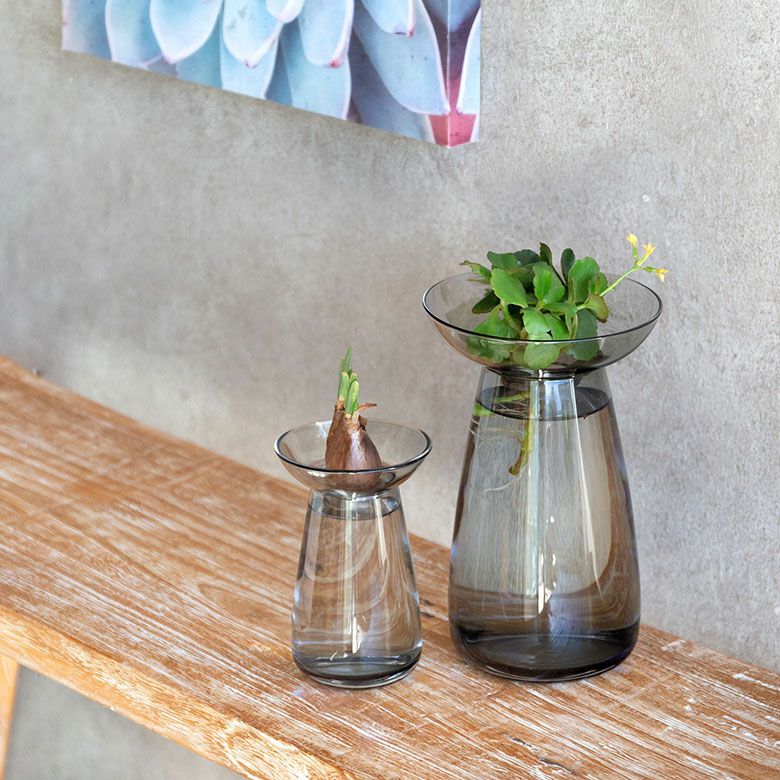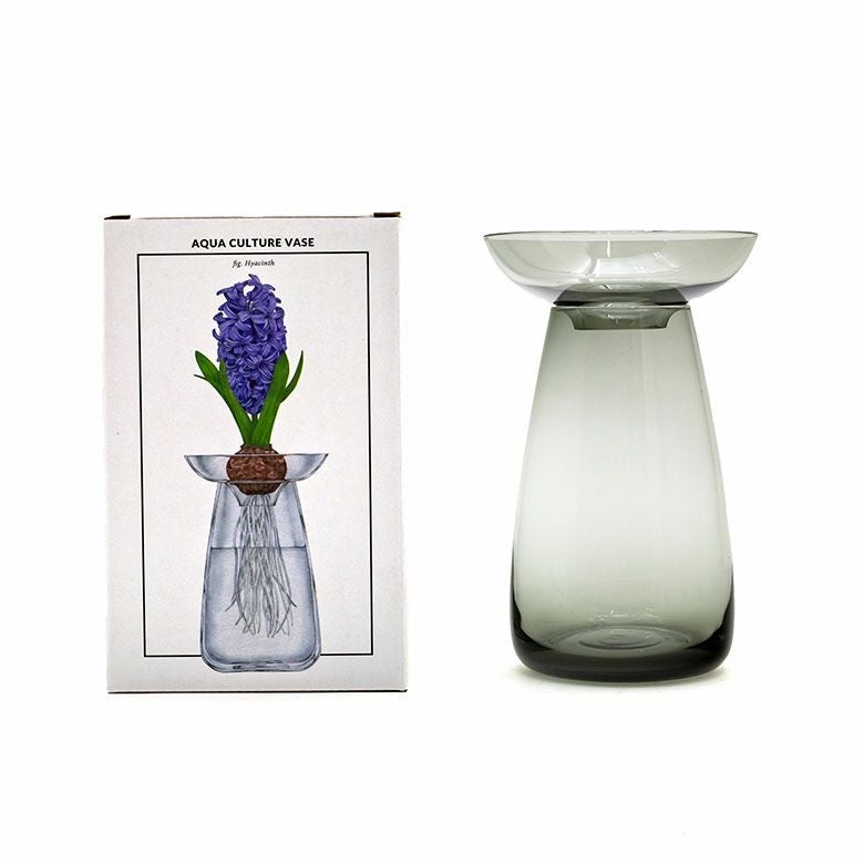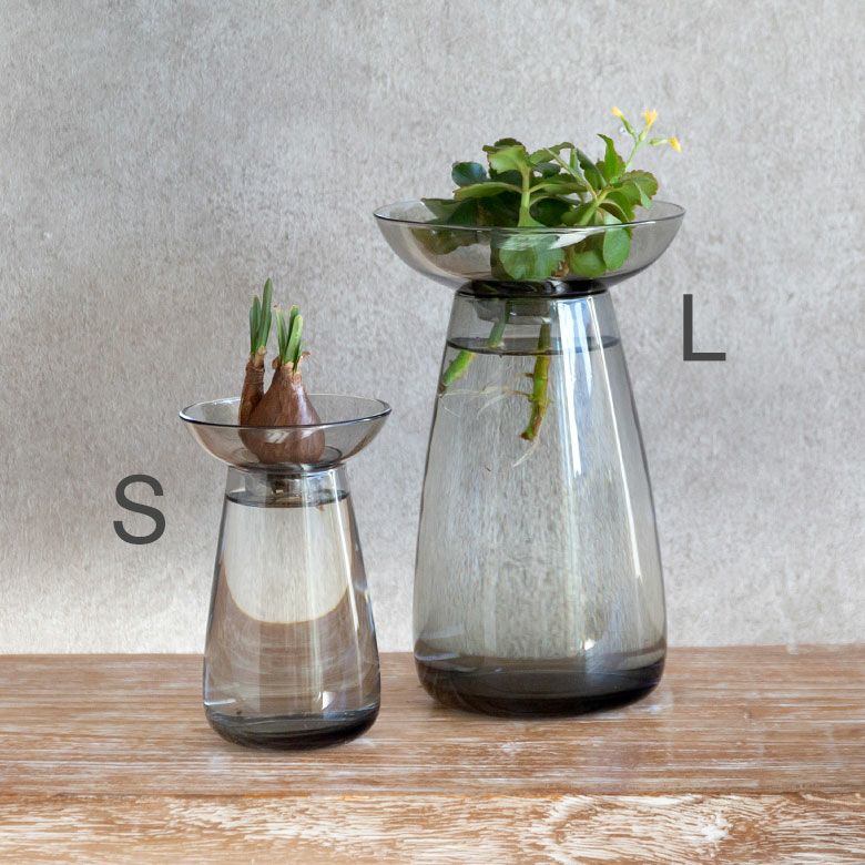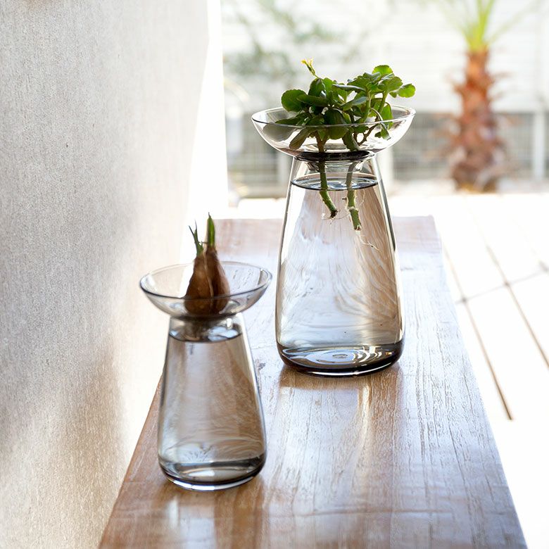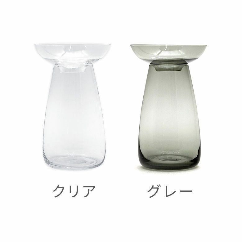 花器 ガラスフラワーベース 観葉植物 ギフト プレゼント 贈り物 フラワーベース ガラス クリア グレー 直径 12cm 高さ 19cm 830ml [90392]【 花瓶 ラウンド 水耕栽培 水栽培 ハイドロポニック おしゃれ お手入れ簡単 2パーツ 透明 灰色 ヒヤシンス サボテン 球根 多肉植物 栽培 KINTO】