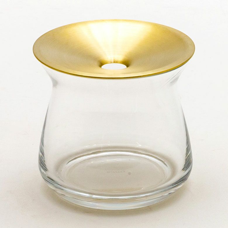花器 ガラスフラワーベース 観葉植物 ギフト プレゼント 贈り物 フラワーベース 一輪挿し ガラス 真鍮 クリア ブラウン 直径 8cm 高さ 7cm 170ml [90389]【 花瓶 ブラス 小さめ 小ぶり ゴールド ラウンド 水耕栽培 水栽培 ハイドロポニック おしゃれ お手入れ簡単 透明 茶色 KINTO】