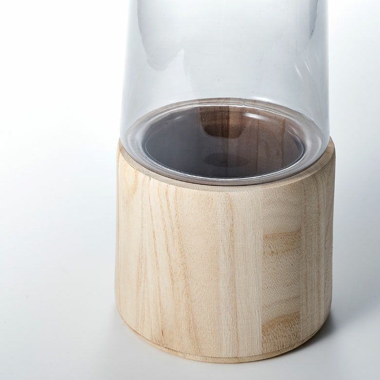 木製花瓶 ウッドフラワーベース 丸 筒 大型 透明 クリア フラワーベース ガラス × ウッド 取り外し可 セパレート スモークグレー 上径9.5cm 円柱 大きい 約 W13×D13×H29 cm 花瓶 花びん 花器 ガラスベース ガラス花びん 生花 ドライフラワー おしゃれ 北欧 韓国 インテリア アジアン 雑貨 アジアン雑貨 [67087]