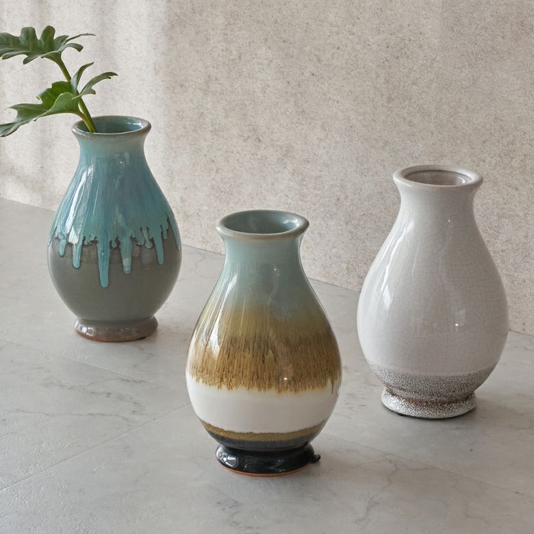 アンティークのような質感でオブジェとしても飾れるアジアンモダンな花器 アンティーク調アジアン フラワーベース 3型3色展開[11556-11557-11558]【花瓶 花器 陶器 焼物 アンティーク 一輪挿し 花入れ オブジェ アジアン雑貨 ナチュラル 置物 置き物 エスニック バリ雑貨 インテリア雑貨】