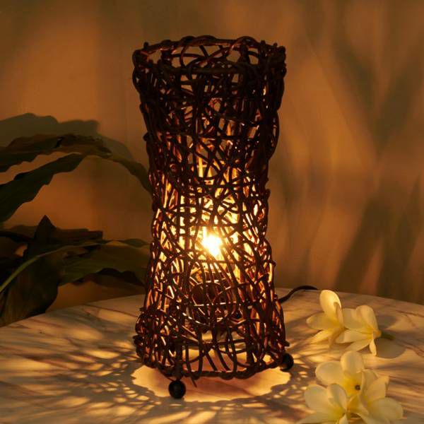ラタンの隙間から幾何学模様の光と影が広がり、お部屋全体を優しく包みます。