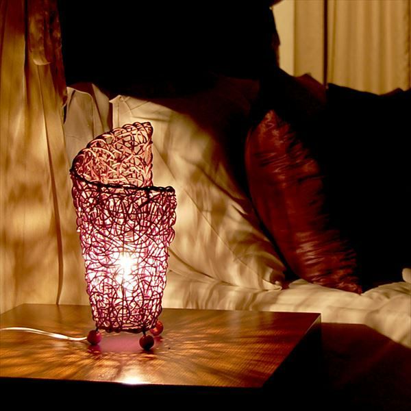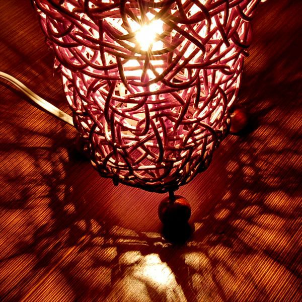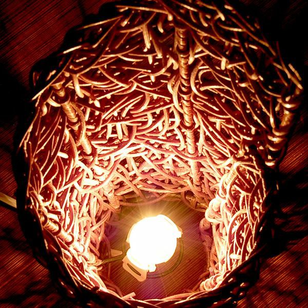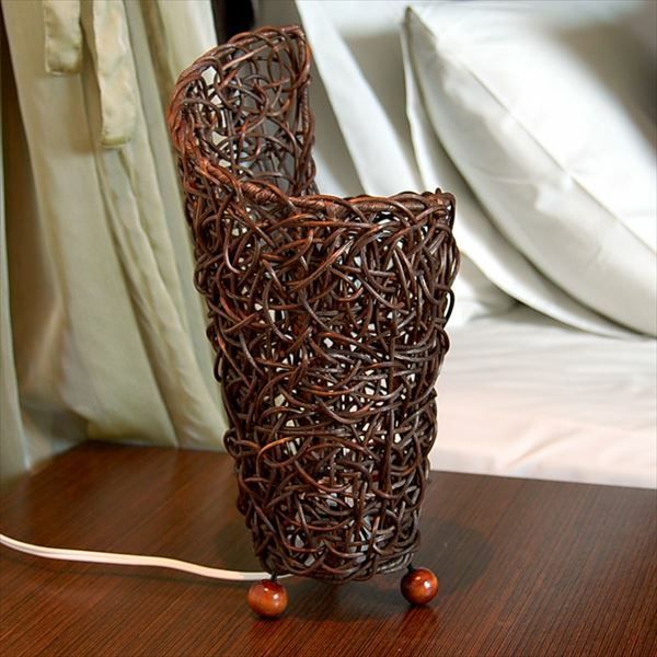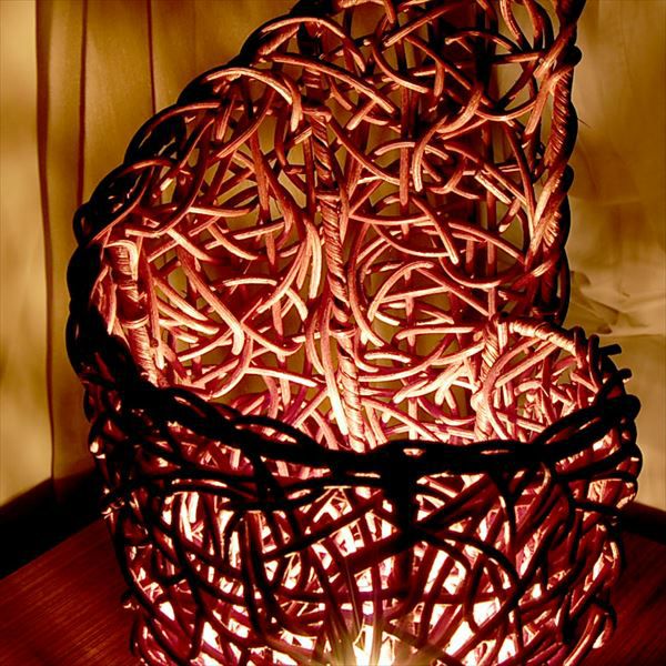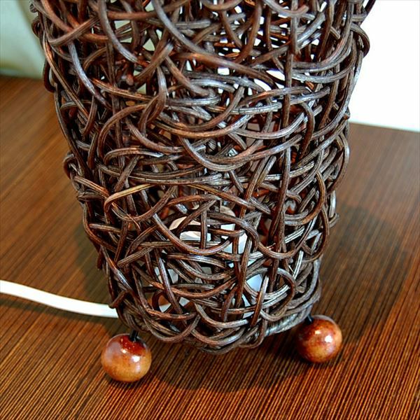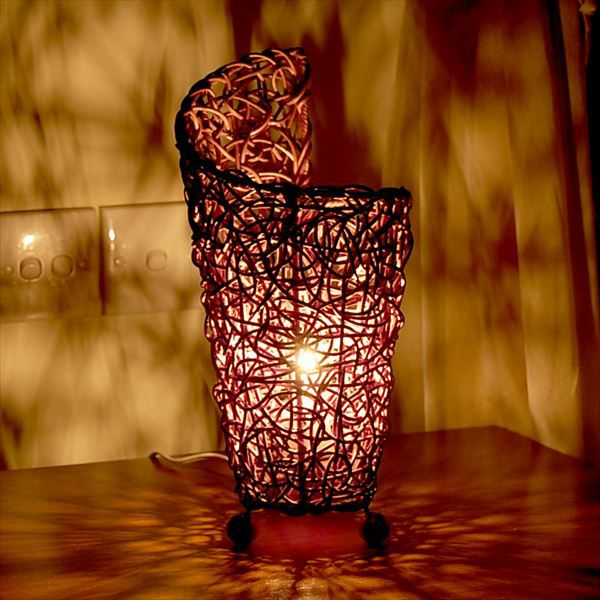 スイッチを入れるとラタンの編み目の隙間から、お部屋に幾何学模様の光と影!