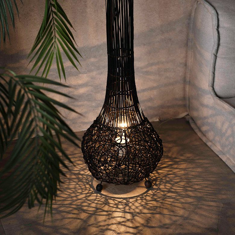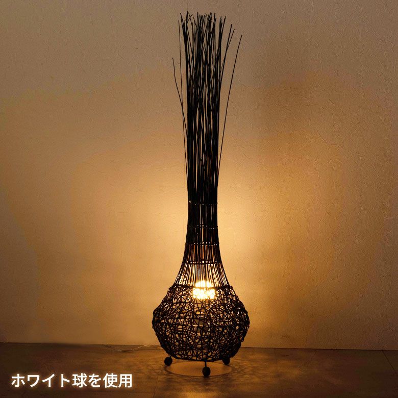 まるで球根のような、ころんとしたユニークなフォルムが印象的なスタンド照明。バリ島生まれのラタンを使い、現地の職人が一点一点丁寧に編み上げています。自然素材ならではの素朴な風合いと、どこか愛らしさを感じるデザインが、空間にやさしい存在感を添えます。