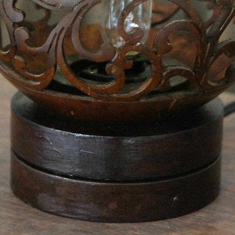 バリの職人がココナッツシェルに繊細なカービングを施した、テーブルランプ。