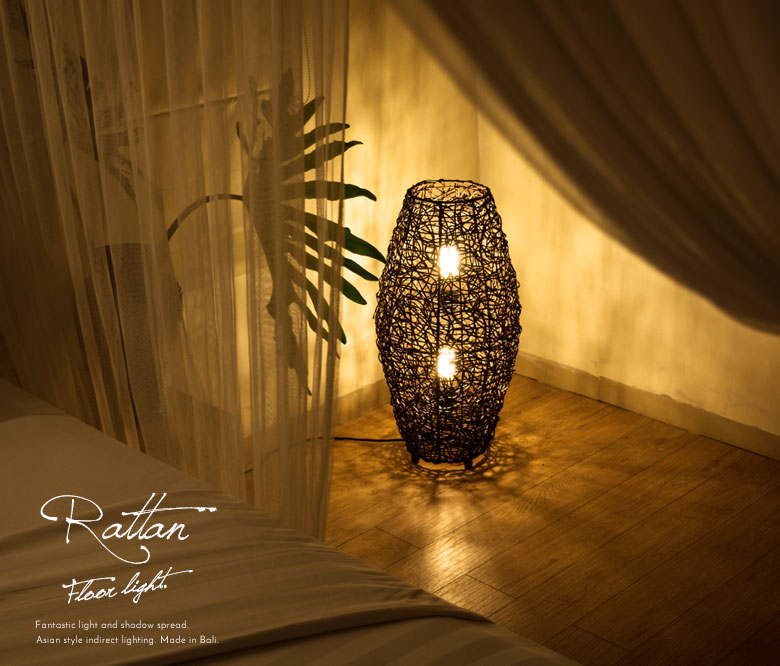 フロアスタンドライト インテリア照明 ナイトライト 寝室 和室 フロアライト リゾート 照明 ライト コクーンタイプ Mサイズ 籐 ラタン製 LED 対応 高さ約60cm [13575]【 フロア照明 スタンドライト フロアランプ 間接照明 アジアンランプ フロアスタンド 照明器具 スタンド 和モダン おしゃれ バリ島 リゾート アジアン 雑貨 アジアン雑貨 】