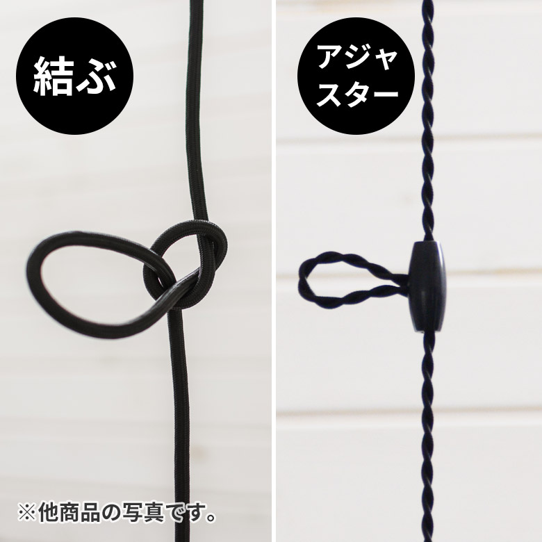 長すぎる場合は、結んだり、ホームセンター等で売られているアジャスターで長さを調節して下さい。