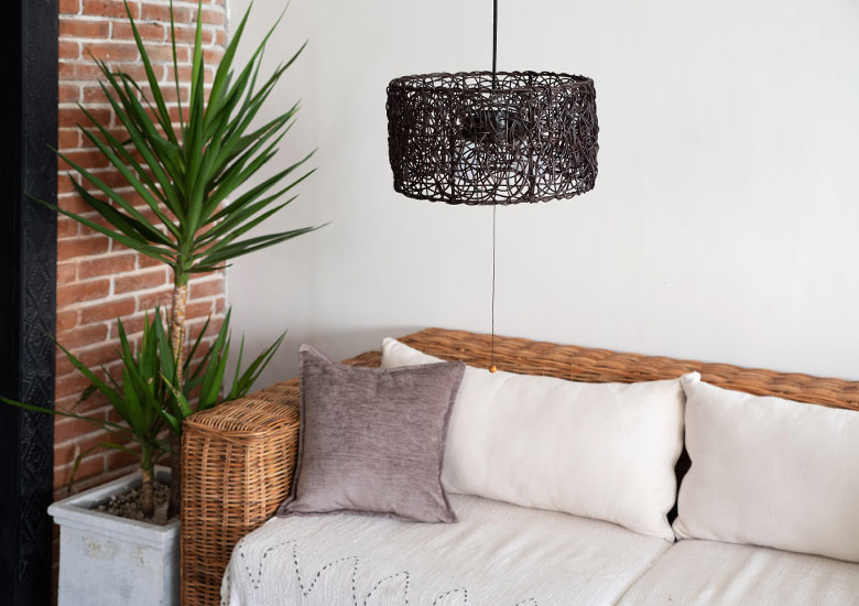 丈夫なラタン(籐)素材を活かし、スチールの骨格に合わせて