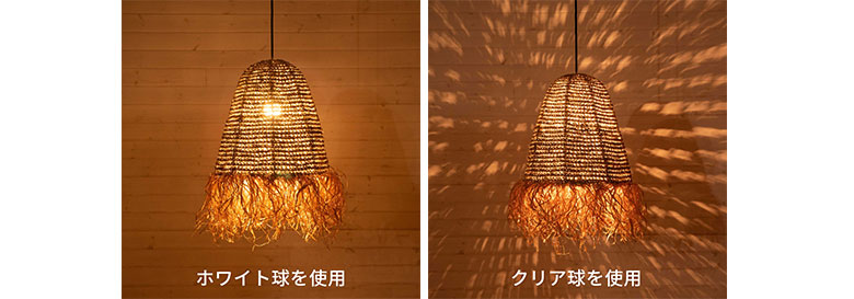 取り付ける電球のガラスの色によって、影の出方が大きく変わるのも、