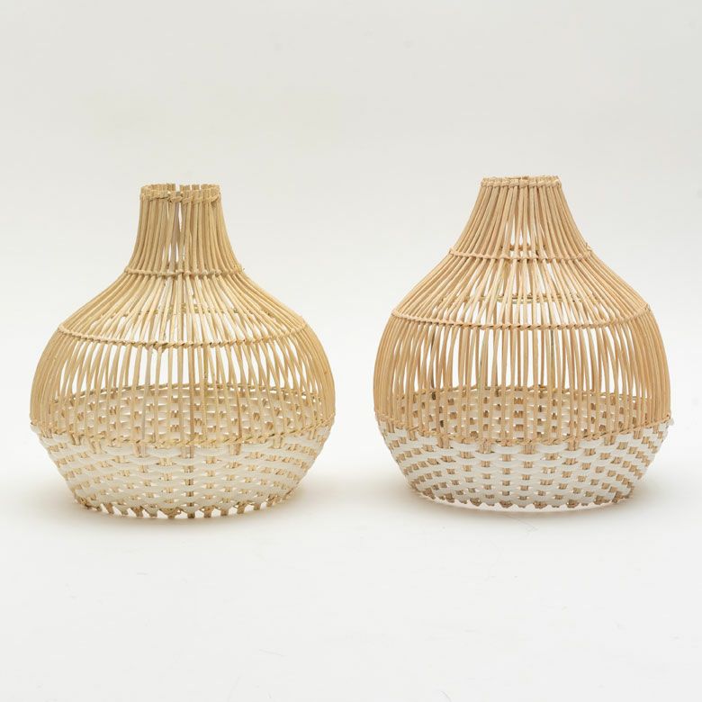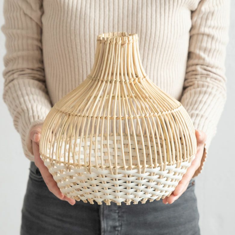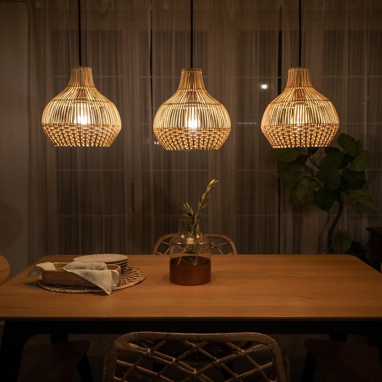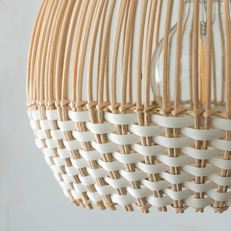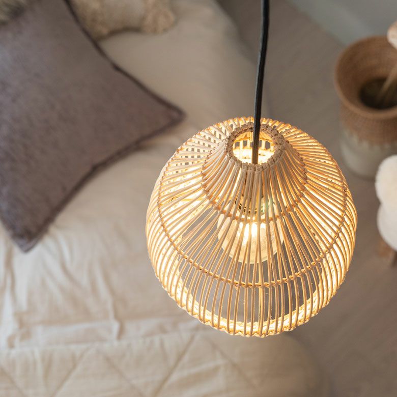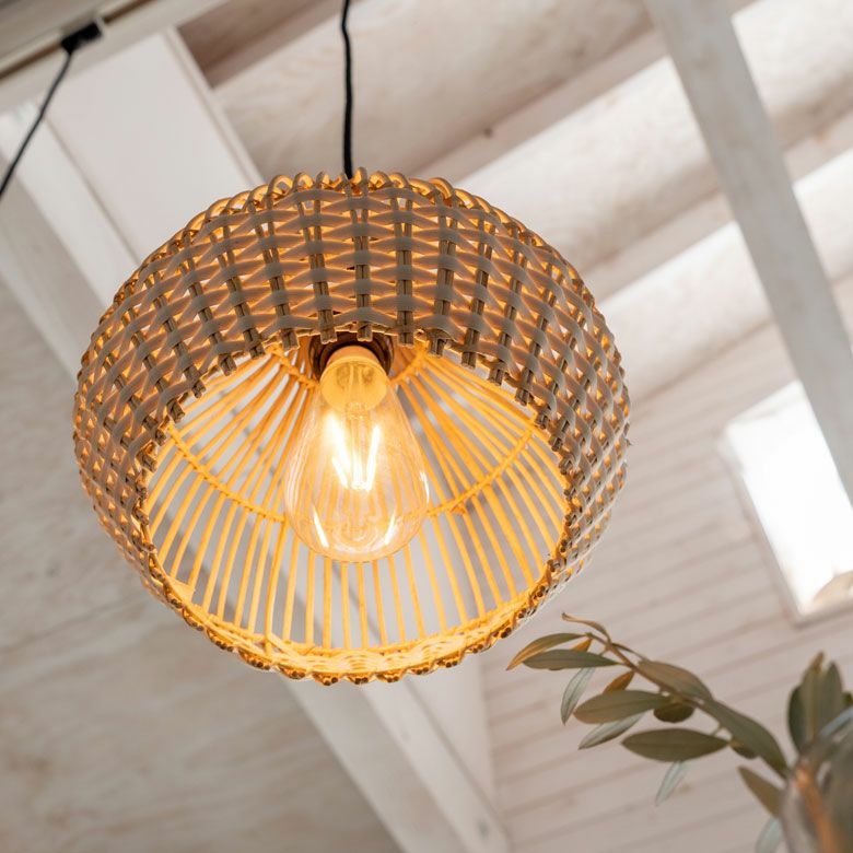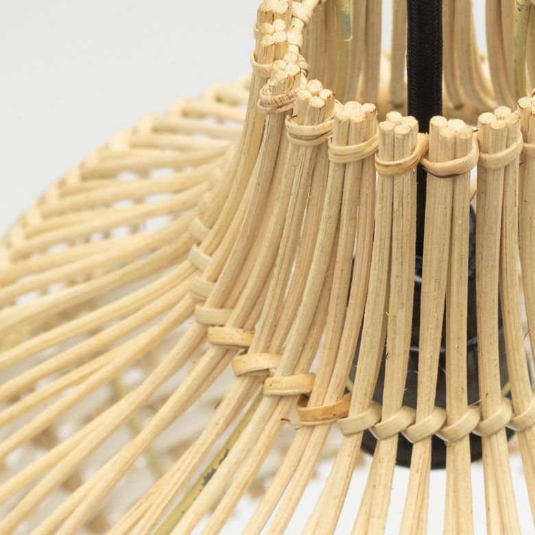 天然素材の温かみを感じる、しなやかなラタンで編まれたランプシェード。