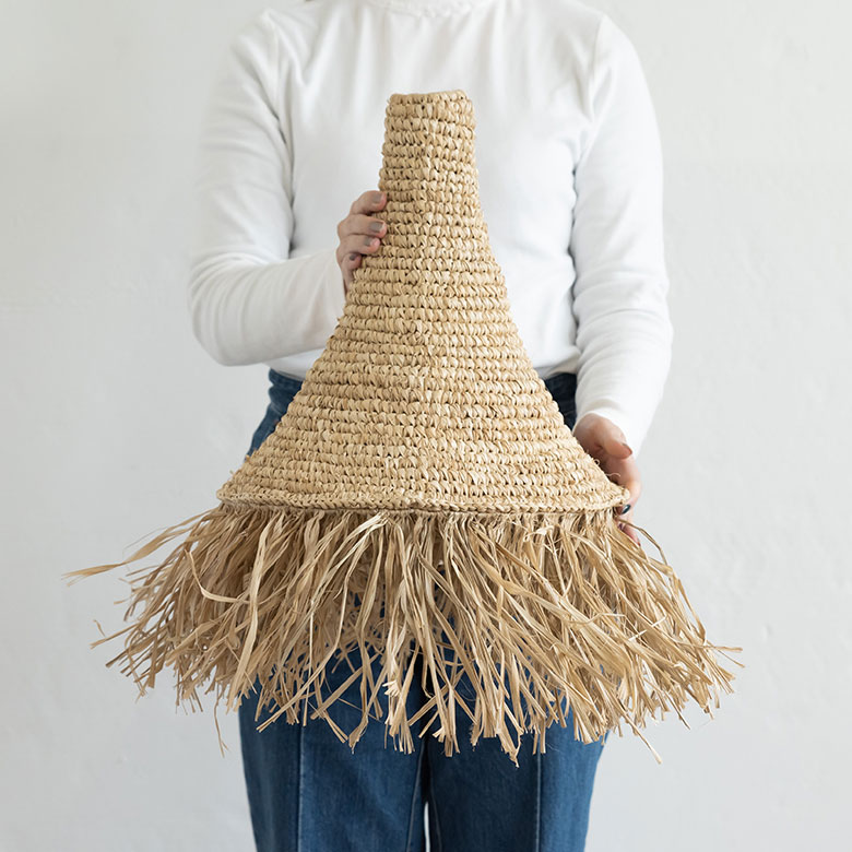 椰子の葉から採れるナチュラルなラフィアを、丁寧に編み上げたペンダントライト。