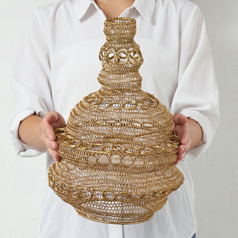 繊細なワイヤーの編み目から広がる光の陰影が幻想的。