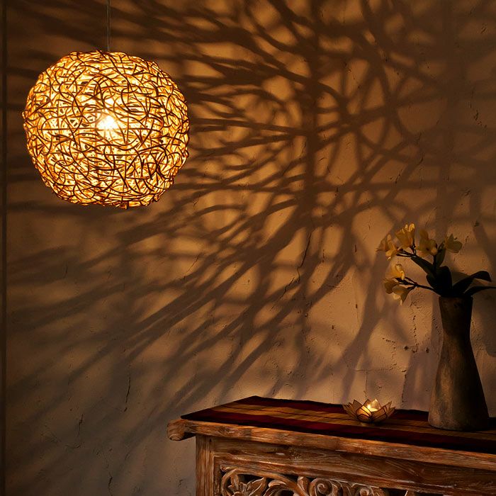 ランプシェード インテリア照明 シェードランプ 寝室 和室 ペンダントライト リゾート 照明 ライト ランプシェード ボールタイプ 1灯 口金26 60W 籐 ラタン製 LED 対応 径34cm 高さ30cm [4331] 【 天井照明 インテリア照明 アジアンランプ ペンダント照明 照明器具 吊り下げ 和モダン おしゃれ バリ島 アジアン 雑貨 アジアン雑貨 】