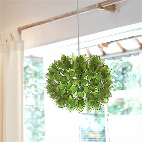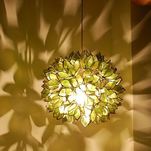 パールシェルを丁寧に繋いだ、まるで綺麗な花が咲いたようなデザインのアジアンランプ。