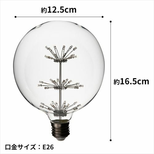 他の画像を見る 花火電球 インテリア照明 カフェ風 アンティーク調 LED電球 レトロランプ エジソン型 スパークリングバルブ 電球色 直径12.5cm E26 クリア [94608]【 電球 ボール型 花火 エジソン電球 エジソン球 フィラメント 裸電球 照明 ペンダントランプ ペンダントライト おしゃれ ヴィンテージ インダストリアル 】 販売価格 ¥ 2,530 税込 在庫切れ 再入荷お知らせ お気に入りに登録する