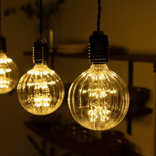 他の画像を見る 花火電球 インテリア照明 カフェ風 アンティーク調 LED電球 レトロランプ エジソン型 スパークリングバルブ 電球色 直径9.5cm E26 クリア [94607]【 電球 ボール型 花火 エジソン電球 エジソン球 フィラメント 裸電球 照明 ペンダントランプ ペンダントライト おしゃれ ヴィンテージ インダストリアル 】 販売価格 ¥ 2,310 税込 在庫切れ 再入荷お知らせ お気に入りに登録する