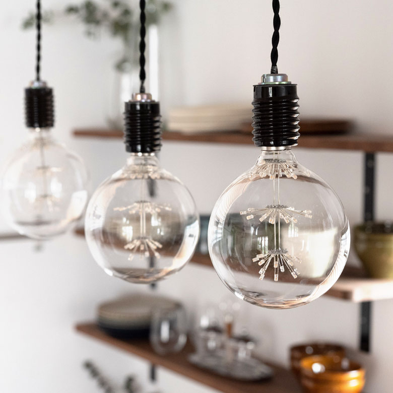 裸電球の明かりを、省エネでエコなLED電球でお楽しみいただけます。
