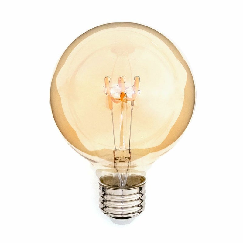 フィラメントが見える、クリアガラス(アンバー色)のレトロなLED電球。