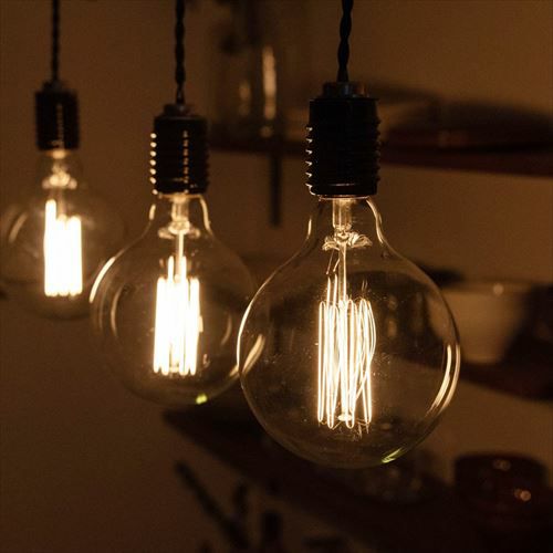 フィラメントが見えるクリアガラスのレトロな白熱球。