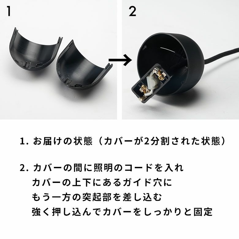 1. 2枚のカバーの間にペンダントライトのコードを入れる