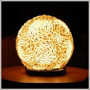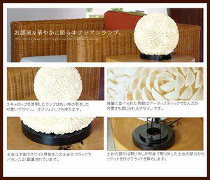 小さな貝殻の『スキャロップシェル』をお花の形に見立てて丸い土台に張り合わせたアジアンランプは