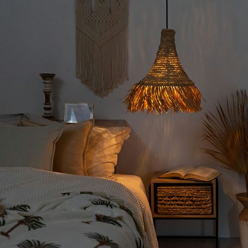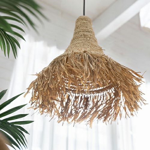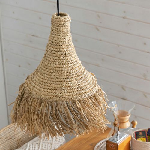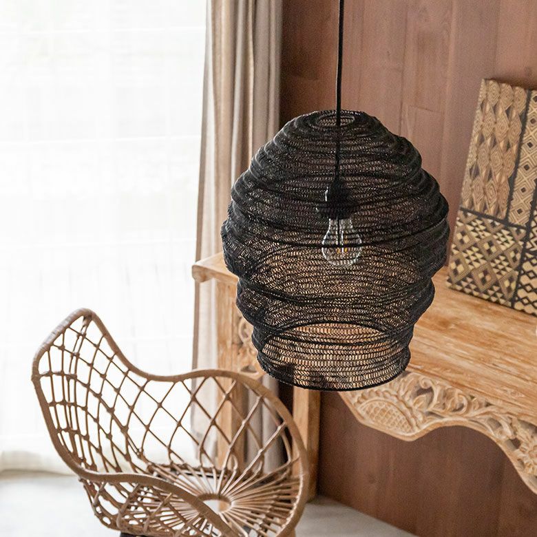 間接照明 吊り下げランプ 天然素材 アジアン家具 店舗 法人 ランプシェード ペンダントライト 照明 ラフィア 1灯 口金E26 60W LED対応 約 W 30 × D 30 × H 45 cm [14003]【 天井照明 照明器具 シーリングライト 吊り下げ ペンダント照明 リビング ダイニング おしゃれ 寝室 アジアン 雑貨 バリ島 リゾート 】