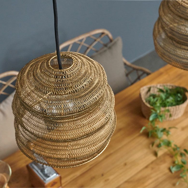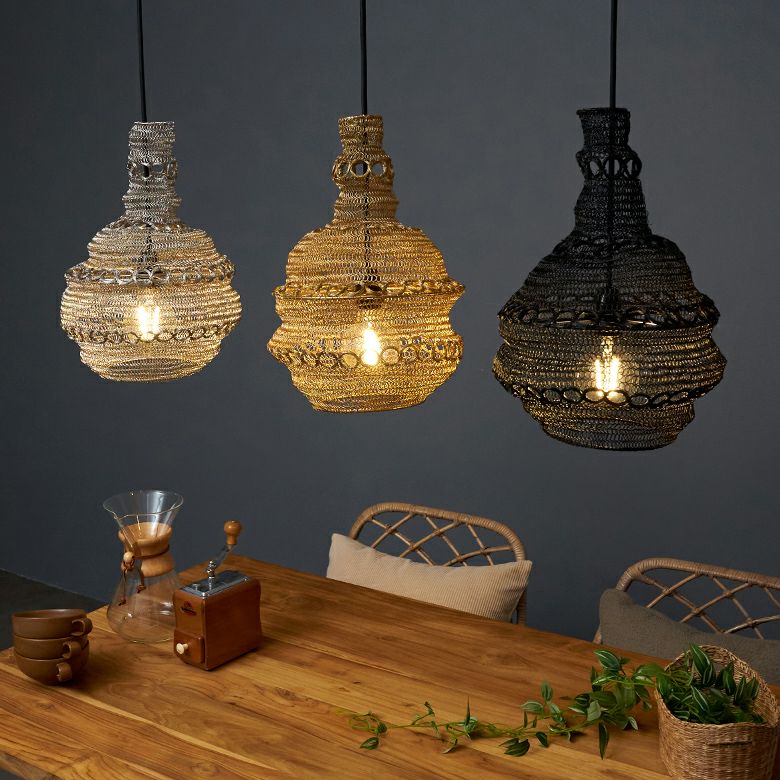 ペンダントライト おしゃれ シェードのみ 玄関 寝室 廊下 ペンダントランプ ワイヤーメッシュ ランプシェード「シェイプ」 照明 ペンダントライト アイアン ワイヤー製 1灯 口金E26 LED対応(電球別売)約 W36×D36×H42cm [34505]【 天井照明 照明器具 ライト 吊り下げ リビング ダイニング アジアン 雑貨 アジアン雑貨 北欧 】