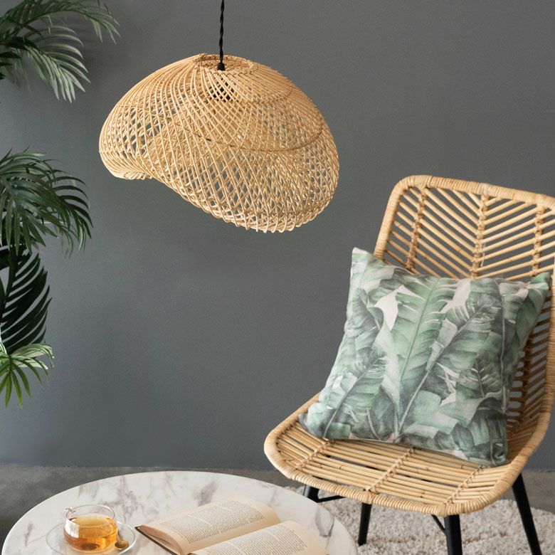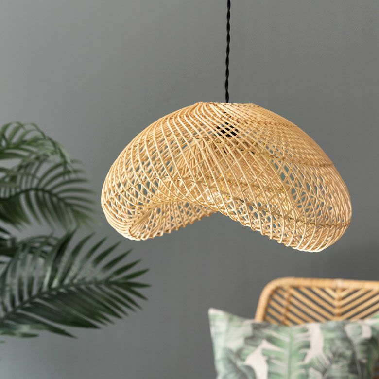 間接照明 吊り下げランプ 天然素材 アジアン家具 店舗 法人 ランプシェード ペンダントライト 照明 ラタン 籐 1灯 口金E26 60W LED対応 約 W 40 × D 34 × H 22.5 cm [13998]【 天井照明 照明器具 シーリングライト 吊り下げ ペンダント照明 リビング ダイニング おしゃれ 寝室 アジアン 雑貨 バリ島 リゾート 】