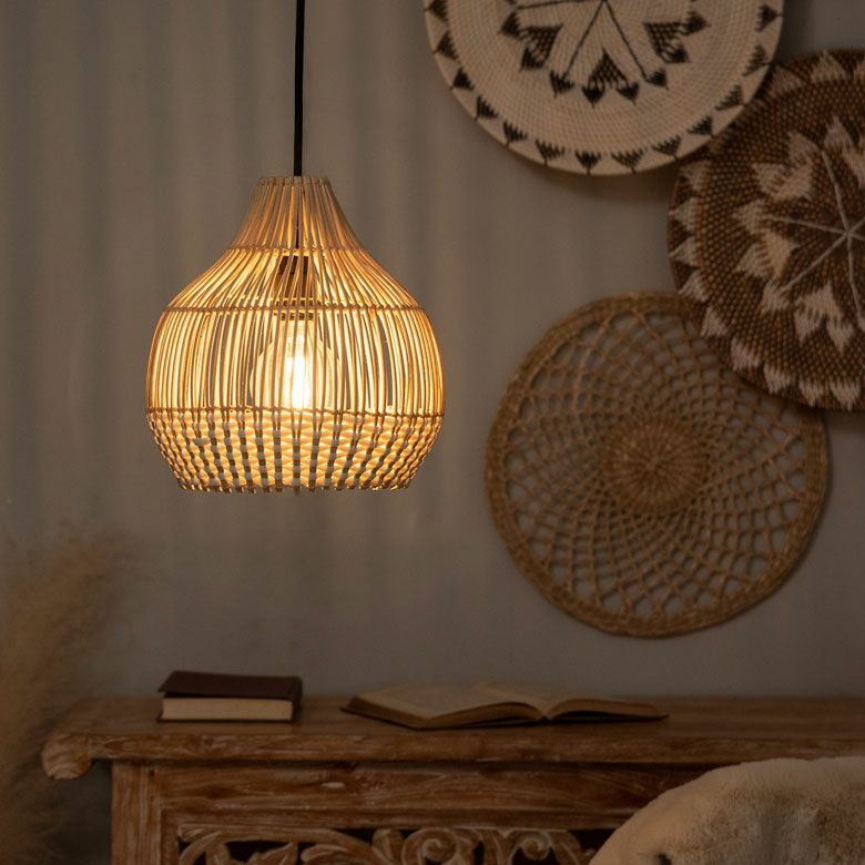間接照明 吊り下げランプ 天然素材 アジアン家具 店舗 法人 ペンダントライト ランプシェード 照明 ラタン 籐 バイカラー ツートン 1灯 口金E26 60W LED対応 約 W 25 × D 25 × H 25 cm [13999]【 天井照明 照明器具 シーリングライト 吊り下げ ペンダント照明 リビング おしゃれ 寝室 アジアン 雑貨 バリ島 リゾート 】