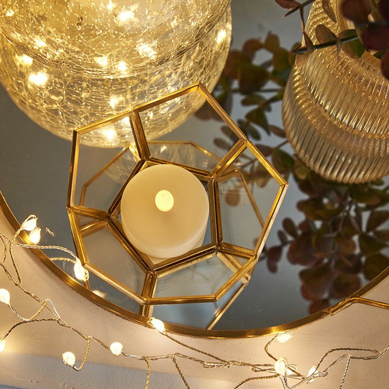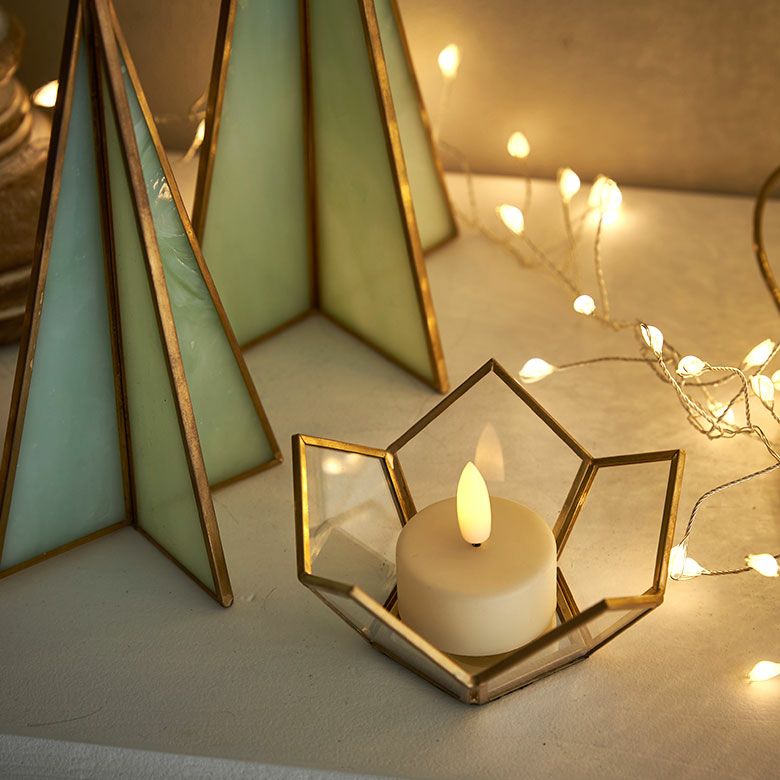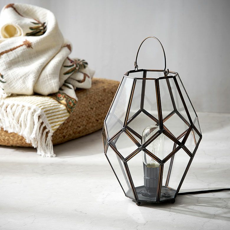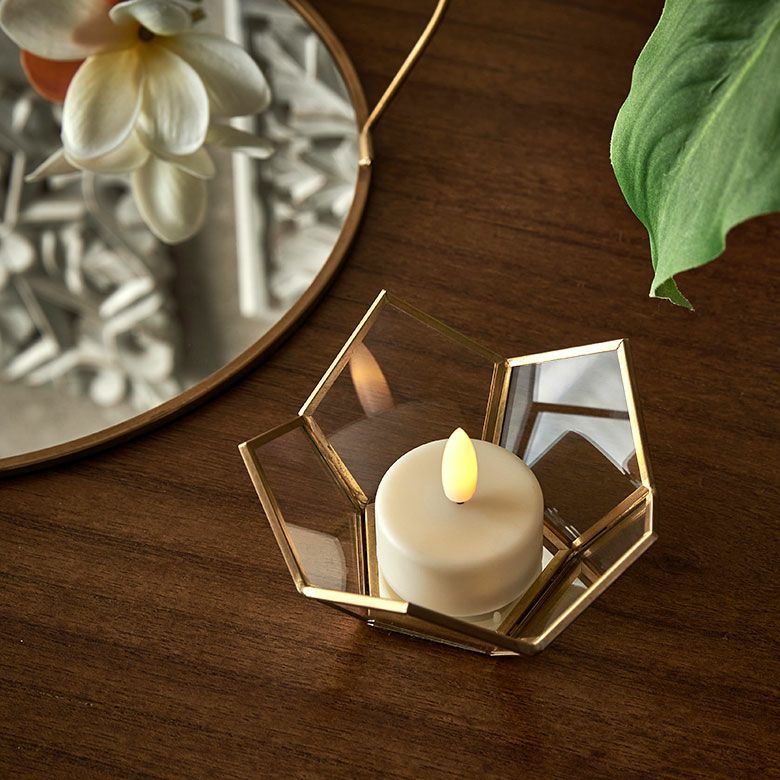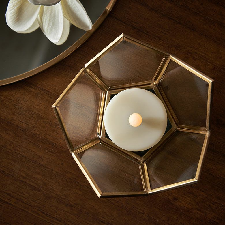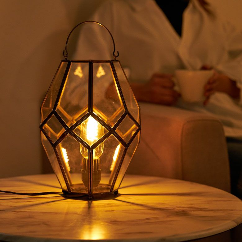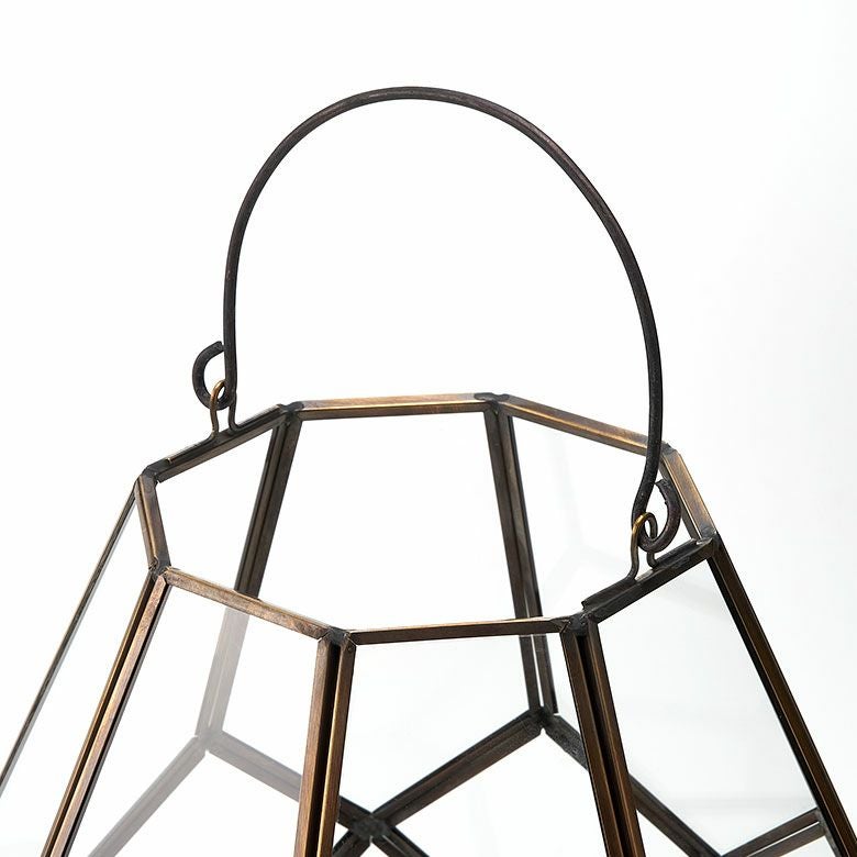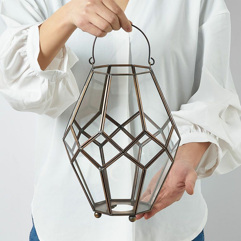 キャンドルランタン キャンドルホルダー キャンドルスタンド インテリアライト ガラス 真鍮 多面体 ソケット口金E26 PSEマーク取得済 約 W 20 × D 20 × H 28 cm ランタン 照明 デスクライト LEDランタン 間接照明 デスクランプ ガラスランプ アンティーク 風 おしゃれ 北欧 オブジェ アジアン雑貨 アジアン 雑貨 [67073]