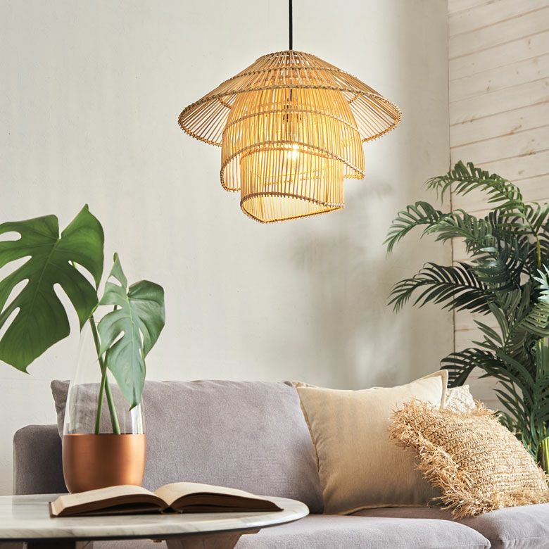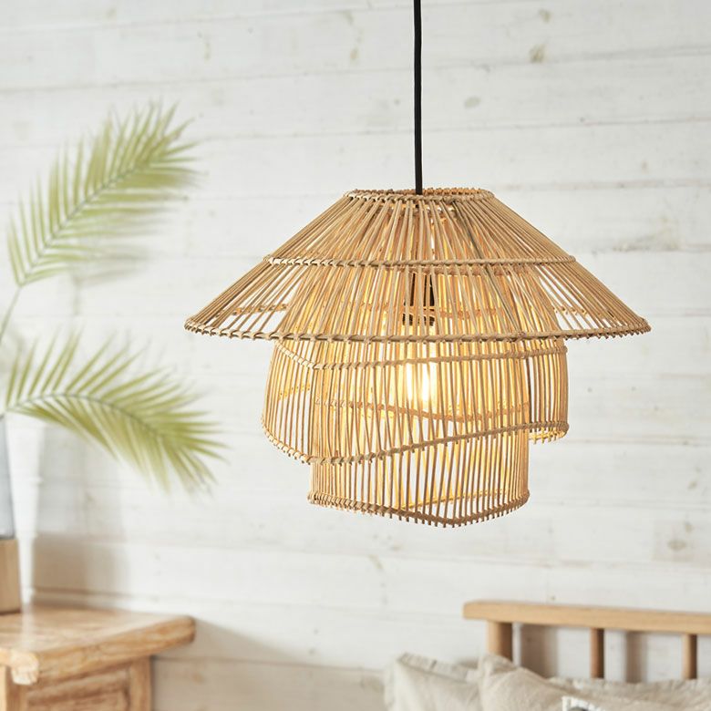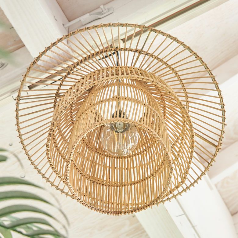 間接照明 竹 風 カサ 傘 春 夏 サマーシーズン ペンダントライト ランプシェード ラタン 籐 レイヤーデザイン 1灯 口金E26 60W LED対応 約 W 45 × D 45 × H 35 cm 照明器具 天井照明 ラタン照明 アジアンランプ シーリング おしゃれ 北欧 韓国 インテリア ジャパンディ アジアン雑貨 バリ島 リゾート 南国 [14014]