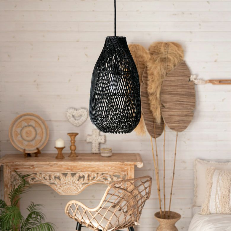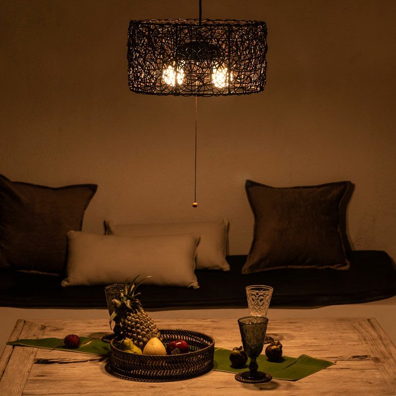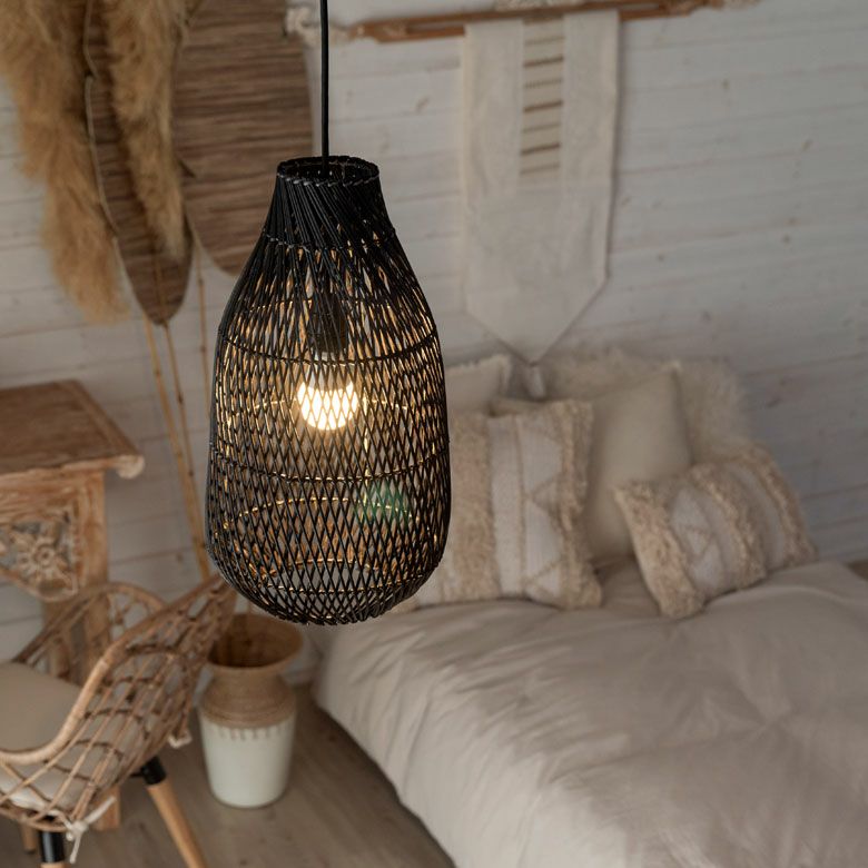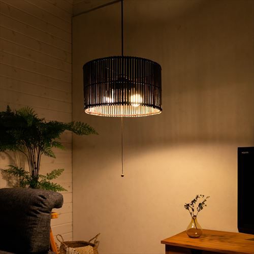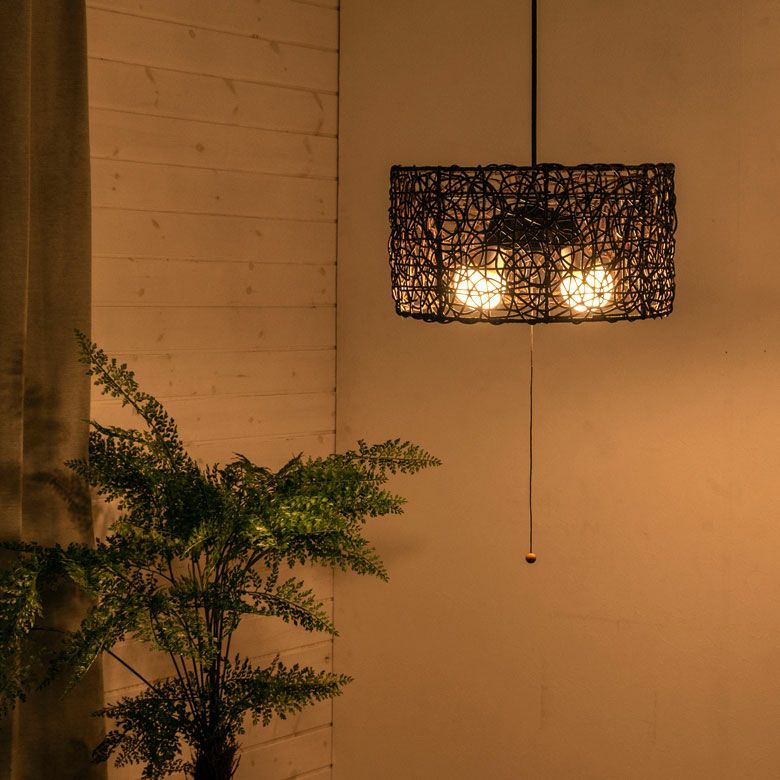 シェードランプ コースタル ナチュラル ペンダントライト 和室 ランプシェード ペンダントランプ 照明 ラタン 籐 ランプ ライト シェード 1灯 口金E26 60W LED 対応 [13936-bk]【 天井照明 インテリア照明 シェード アジアンランプ ペンダント照明 吊り下げ 和モダン 照明器具 おしゃれ リゾート 北欧 アジアン雑貨 バリ島 】