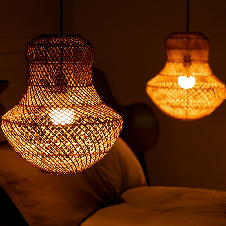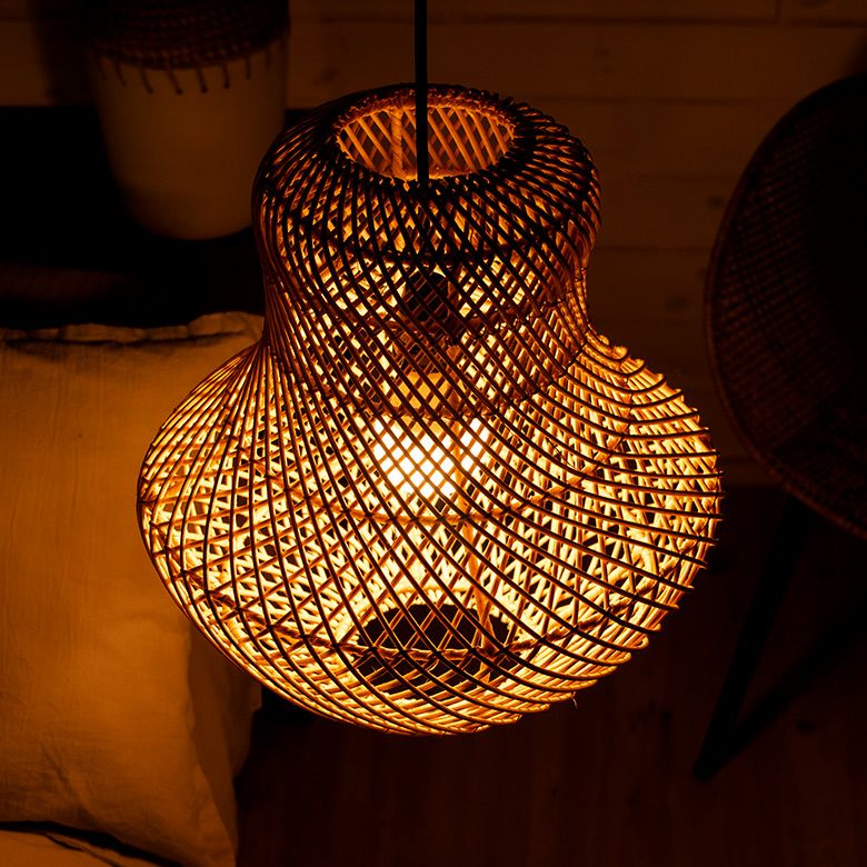シェードランプ カフェ風 アジアン アジアン家具 アジアン雑貨 ペンダントランプ リゾート 照明 ライト ランプシェード ラタン製 ひょうたん型 1灯 口金E26 60W LED 対応 径35cm 高さ38cm [13867]【 天井照明 インテリア照明 ランプ シェード アジアンランプ ペンダント照明 照明器具 吊り下げ 和モダン おしゃれ バリ島 アジアン 雑貨 アジアン雑貨 】