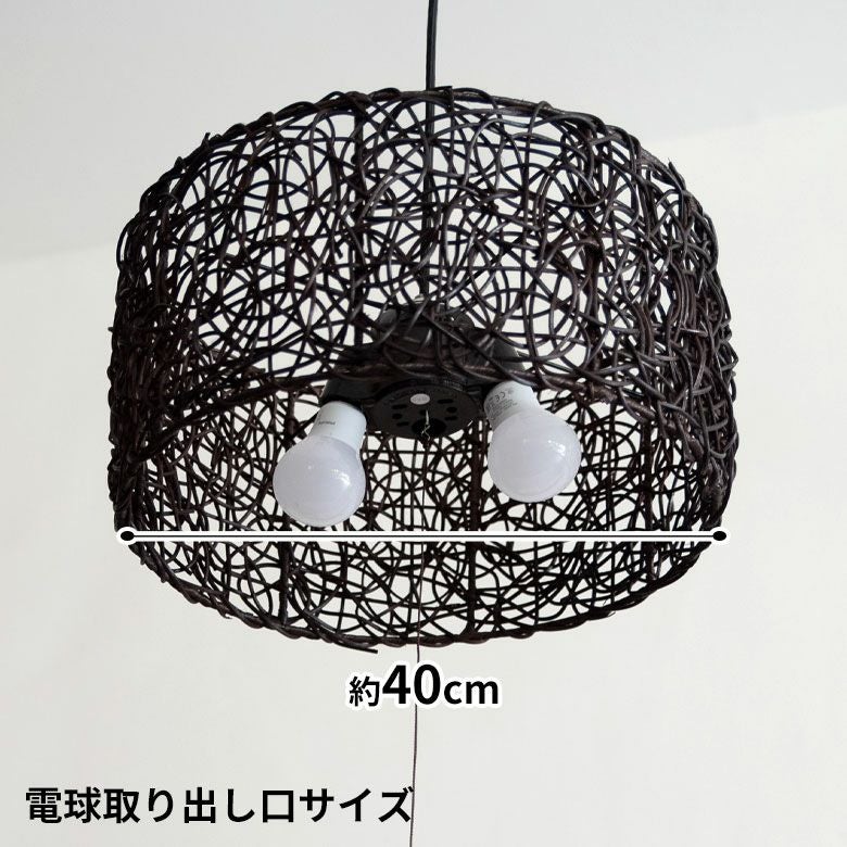 ランプシェード インテリア照明 シェードランプ 寝室 和室 ペンダントライト リゾート 照明 ライト ランプシェード ラウンドタイプ 2灯 口金E26 100W 籐 ラタン製 LED 対応 径40cm 高さ22cm [13579]【 天井照明 インテリア照明 アジアンランプ ペンダント照明 照明器具 吊り下げ 和モダン おしゃれ バリ島 アジアン 雑貨 アジアン雑貨 】