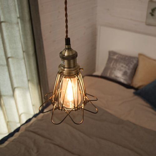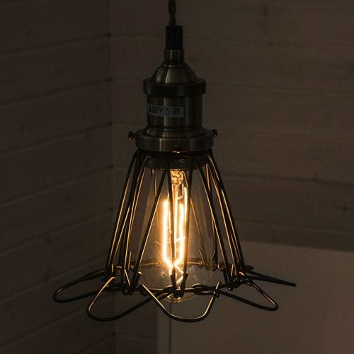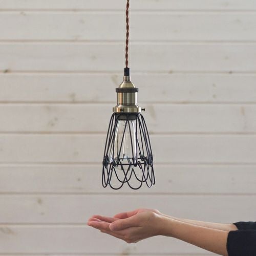 フラワーモチーフのワイヤーシェードが特徴のペンダントライト。 エジソン電球付き フラワーモチーフ ペンダントライト (91165)【照明 おしゃれ インダストリアル ペンダントライト アンティーク調 シーリングライト ヴィンテージ リビング ダイニング キッチン レトロ アルミ 1灯 カフェ風 店舗 北欧 吊り下げ】